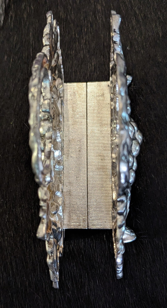 1994 Godinger Silver Plate Napkin Holder in Grapes & Grape Leaves Motif 7x5.25"