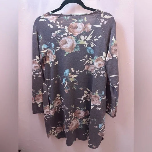 12PM by Mon Ami, Medium. Floral Long Sleeve Tunic with Pockets. EUC