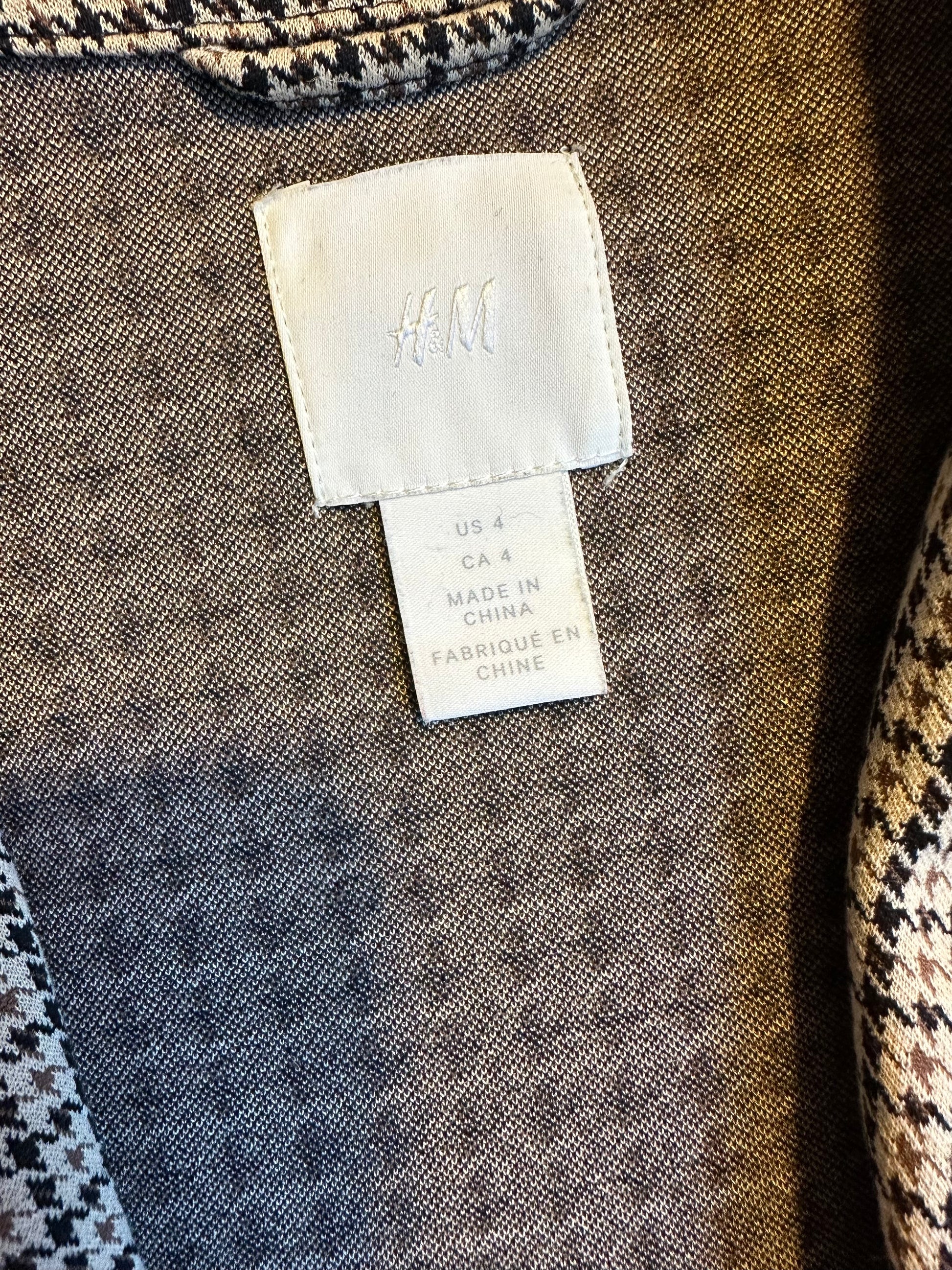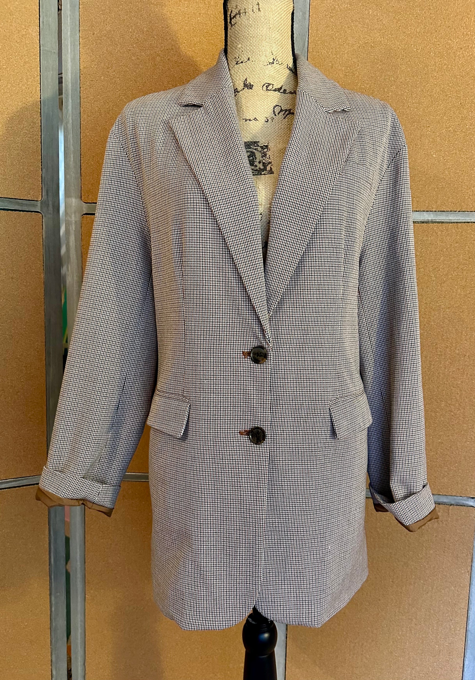 A New Day Houndstooth Blazer Women’s Small Brown Taupe Longline Jacket Lined