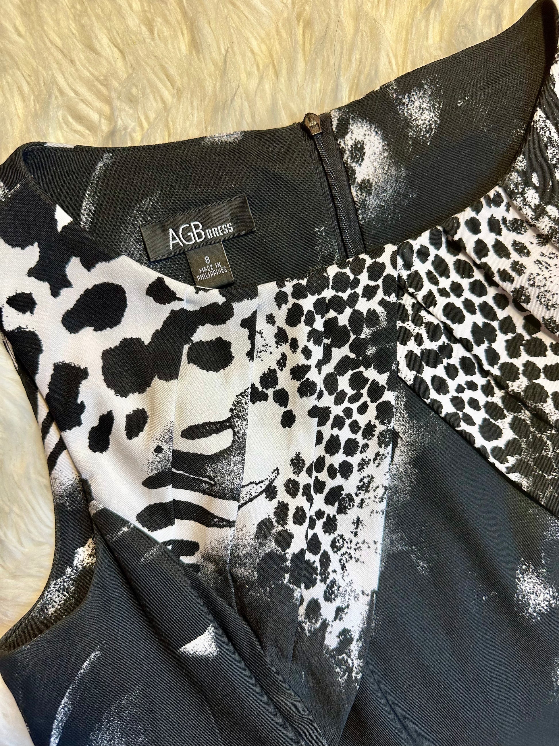 AGB Black White Animal Print Fit & Flare Dress Size 8 – Pleated Front Detail