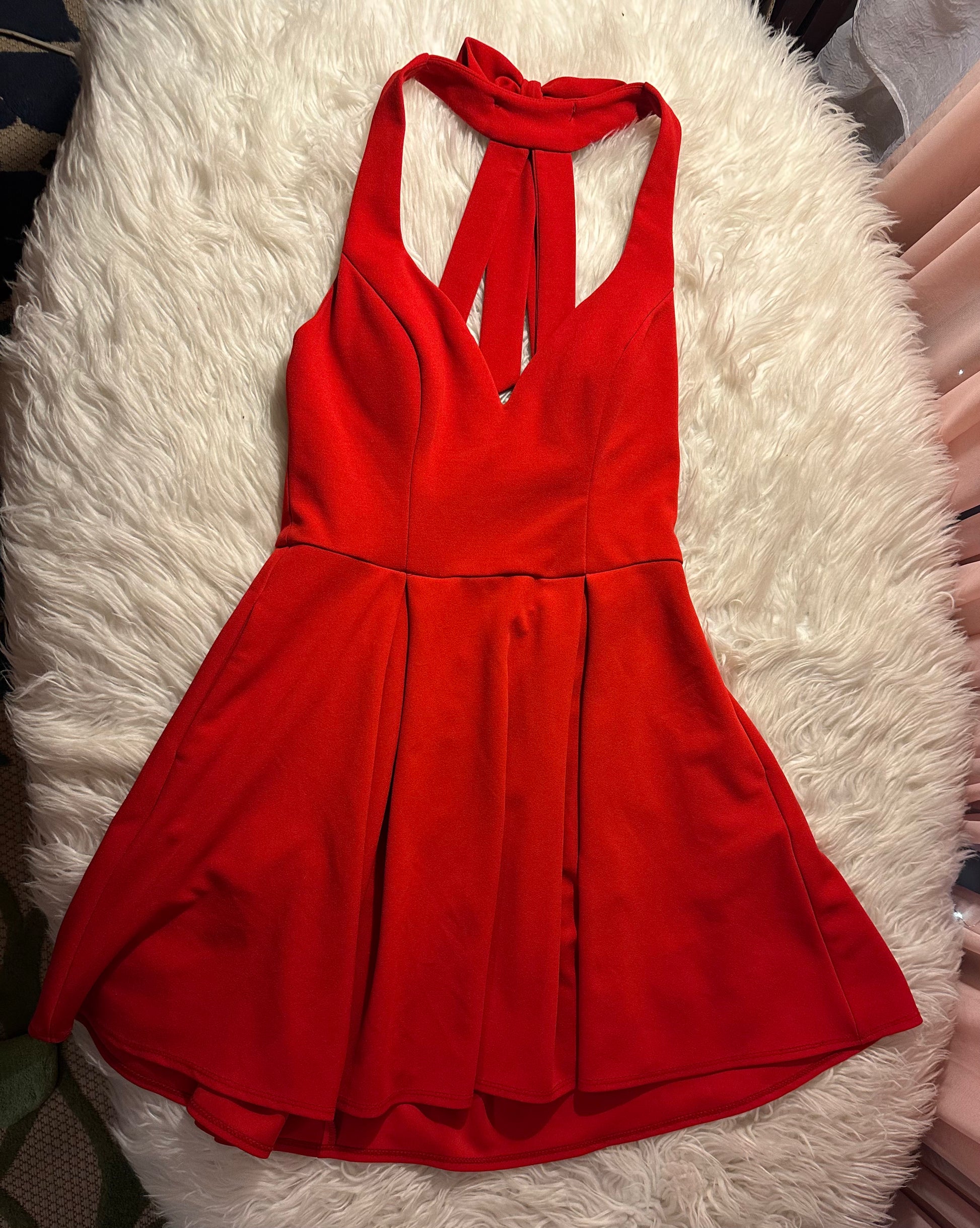 B Darlin Red Fit & Flare Bow-Back Dress Women’s Size Small (2–4)