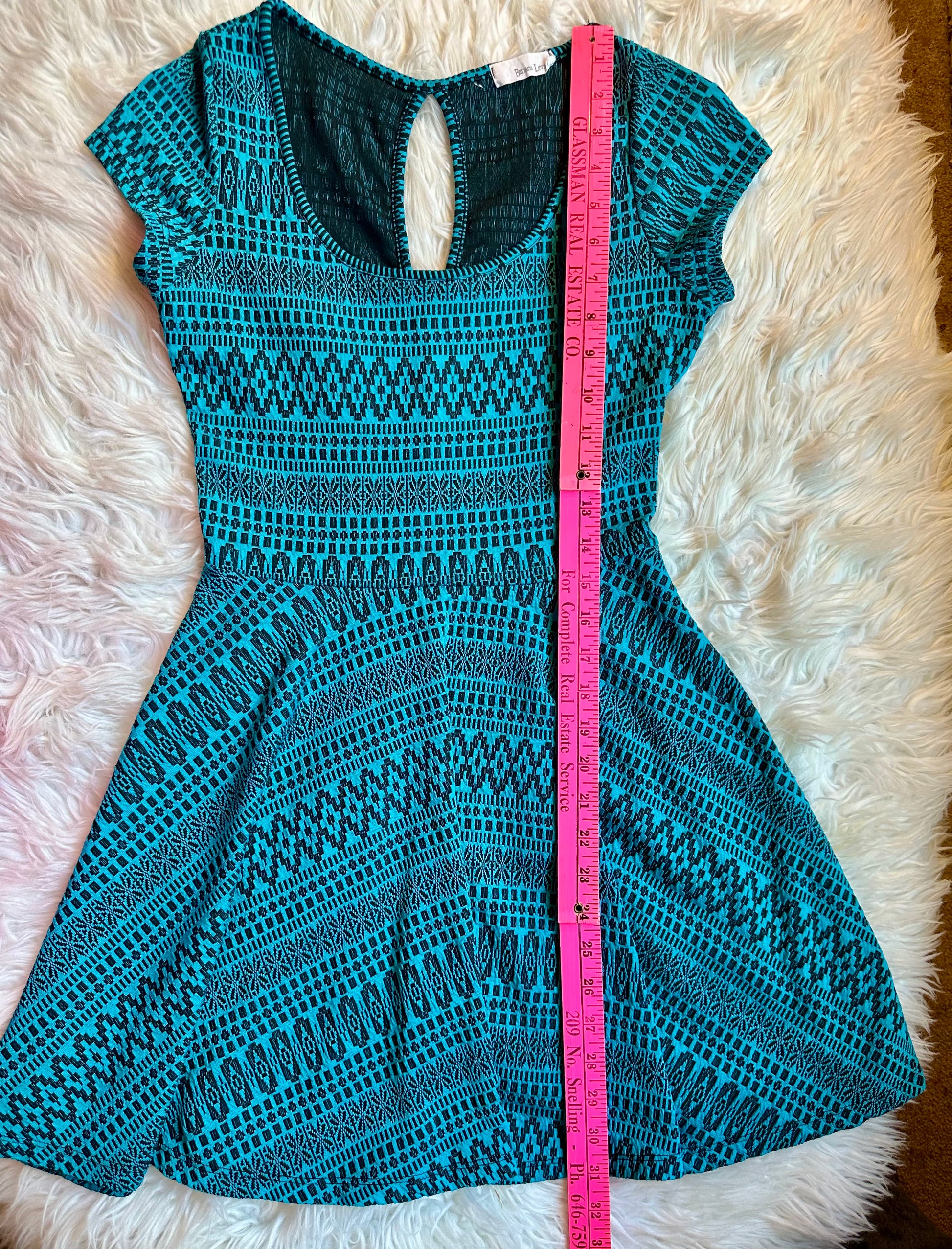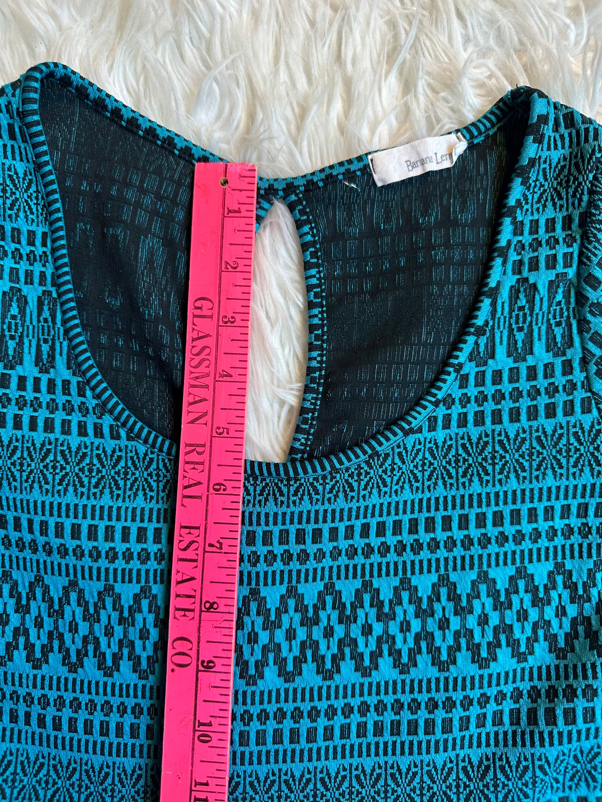 Banana Lemon Blue Black Aztec Print Fit & Flare Cap Sleeve Dress Women’s Small