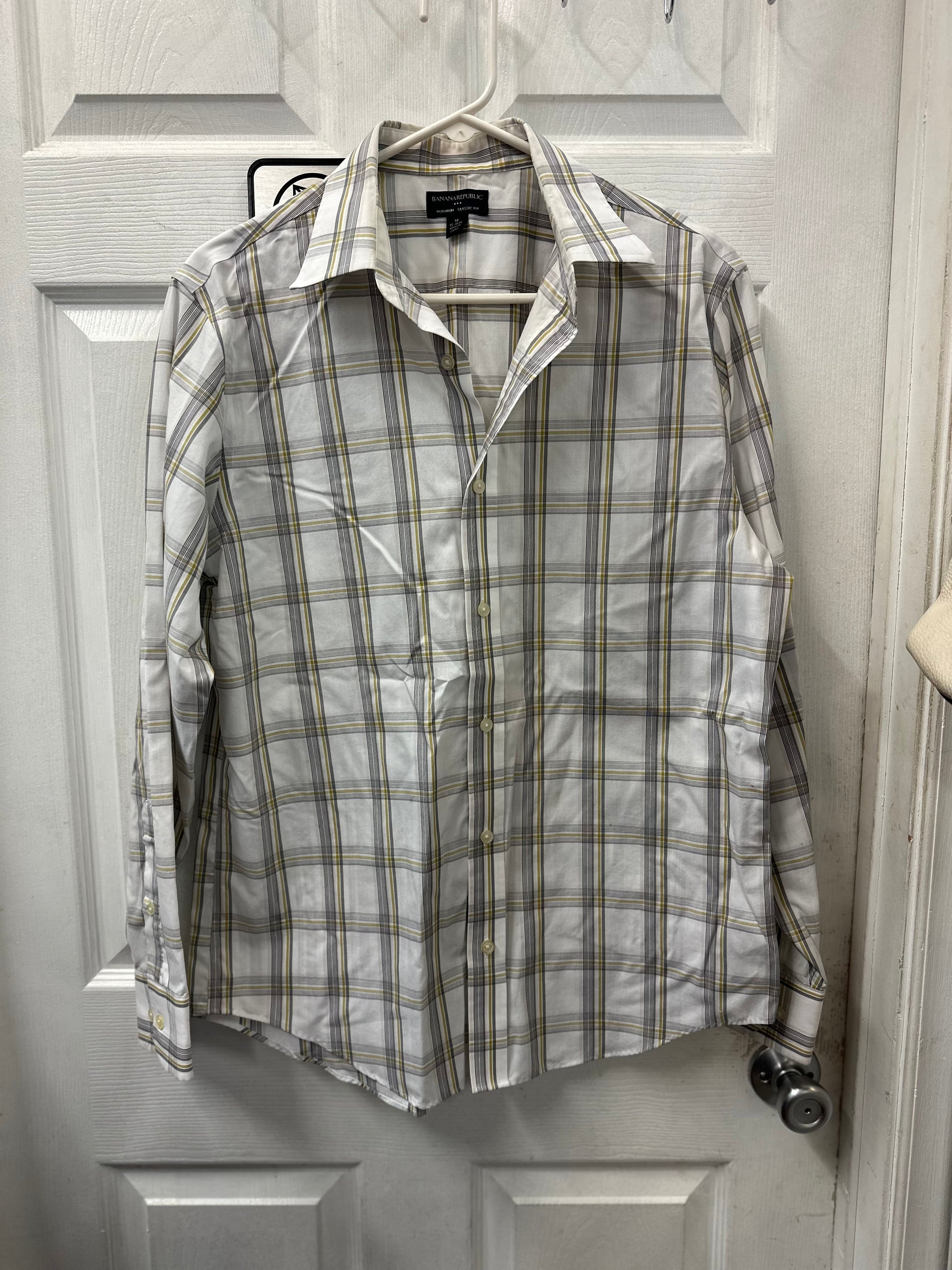 Banana Republic White Plaid Long Sleeve Button Down in M