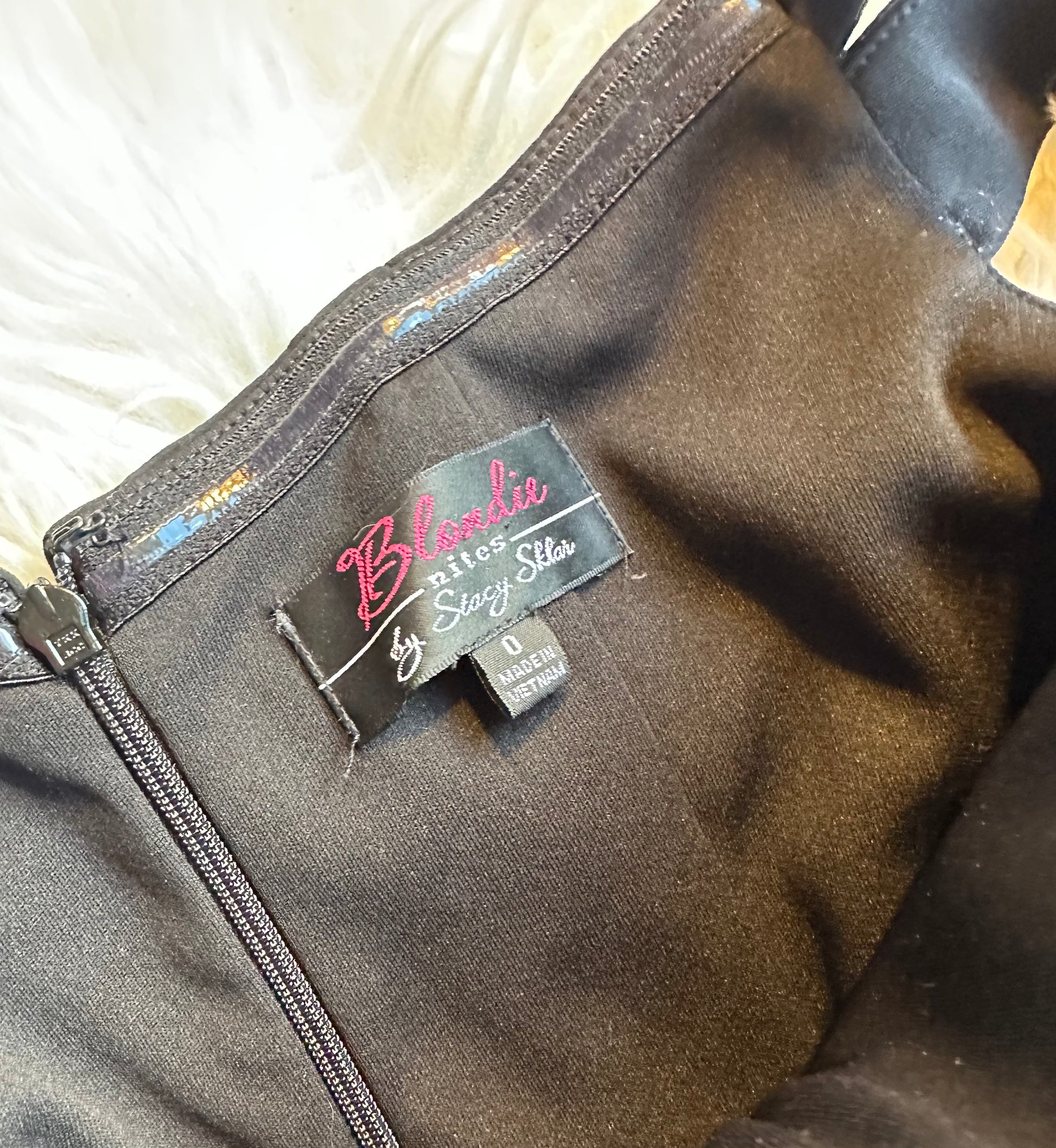 • Fully lined, back zipper
