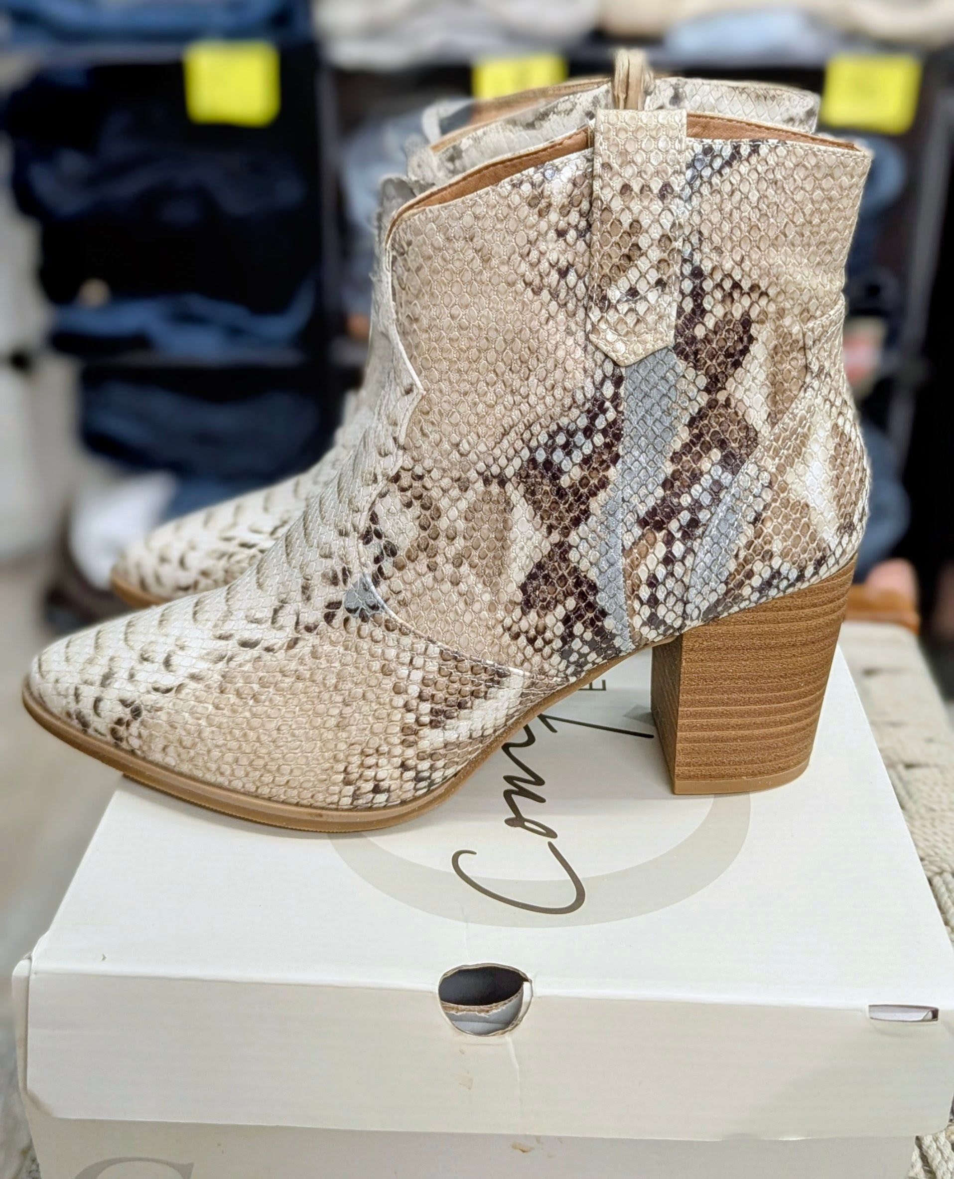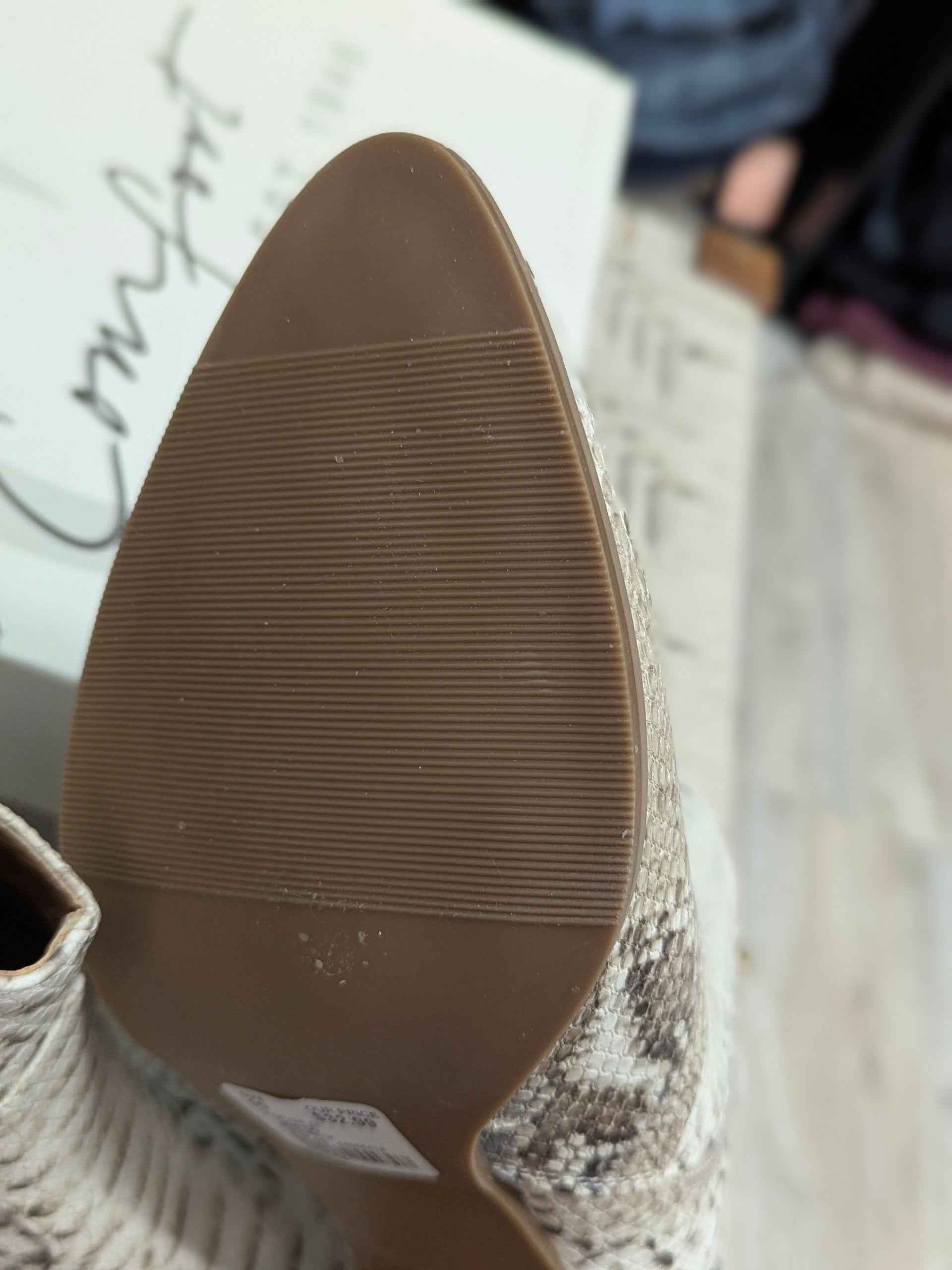 Step out in effortless style with these Cato Comfort snakeskin ankle booties, brand new in box. Designed for both fashion and comfort, these chic booties feature a neutral snakeskin print, side zipper for easy wear, and a sturdy stacked block heel for all-day support.