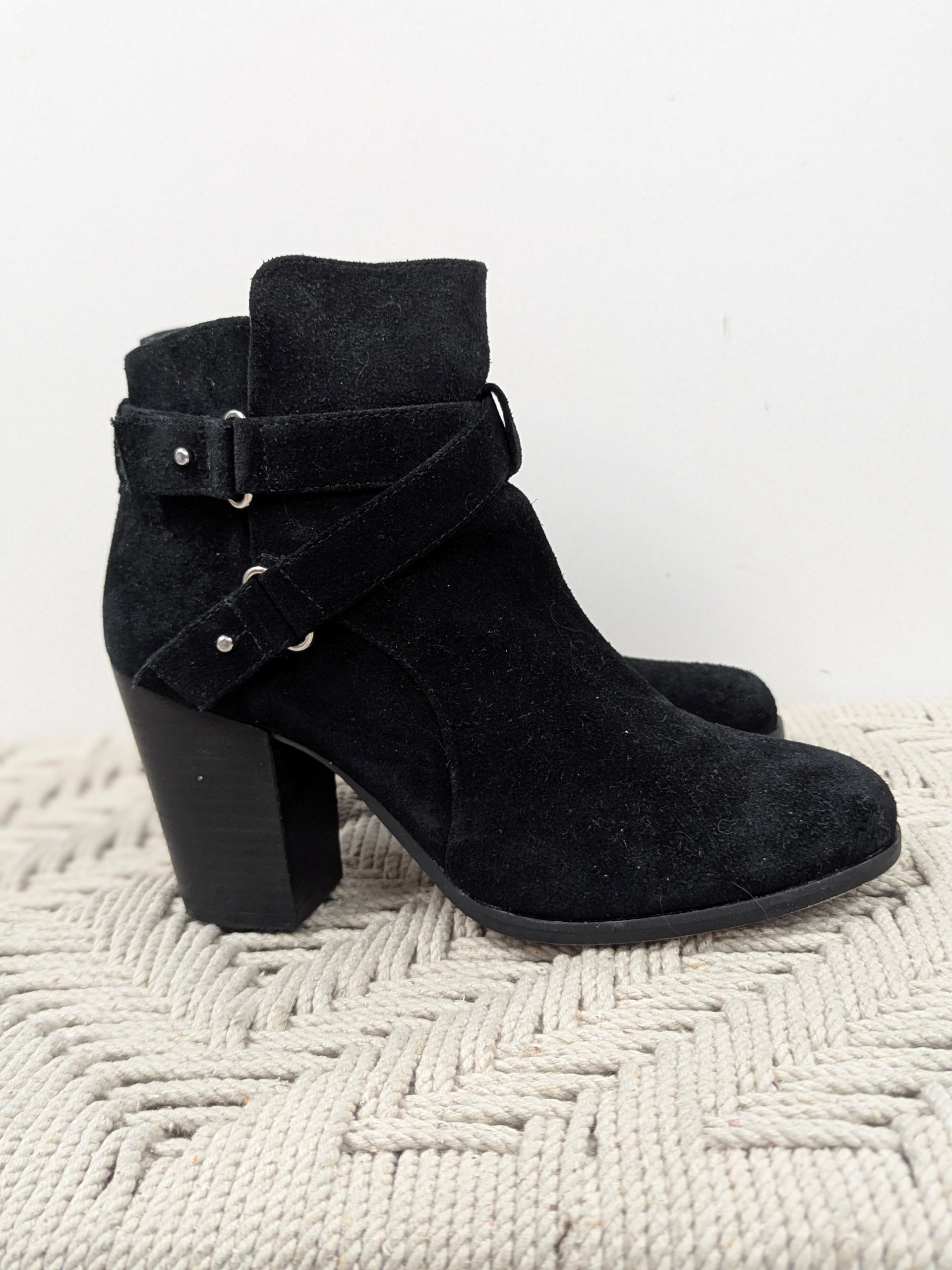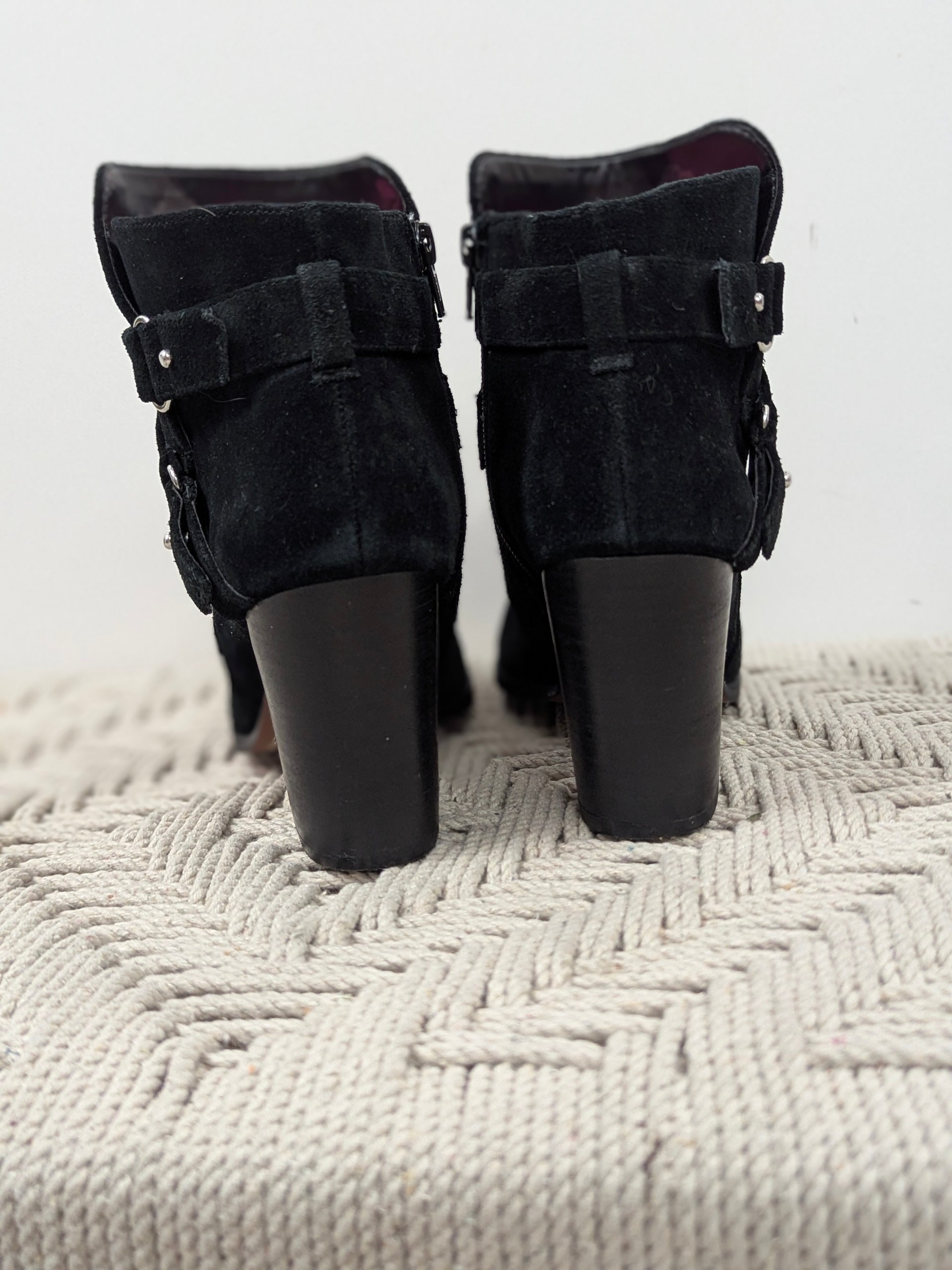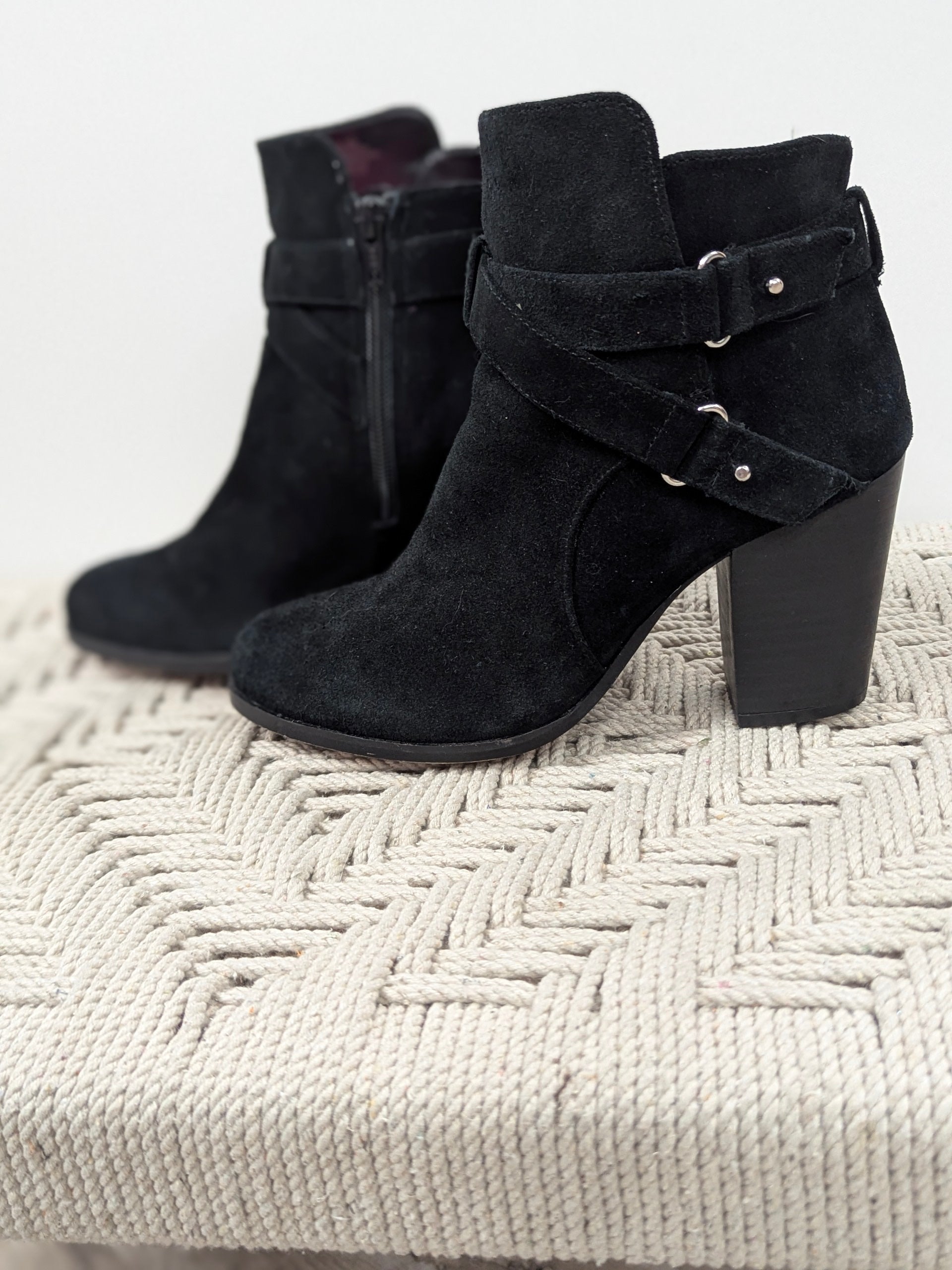 GIANNI BINI Black Suede Buckle Strap Block Heel Ankle Zip Booties Women’s 8.5