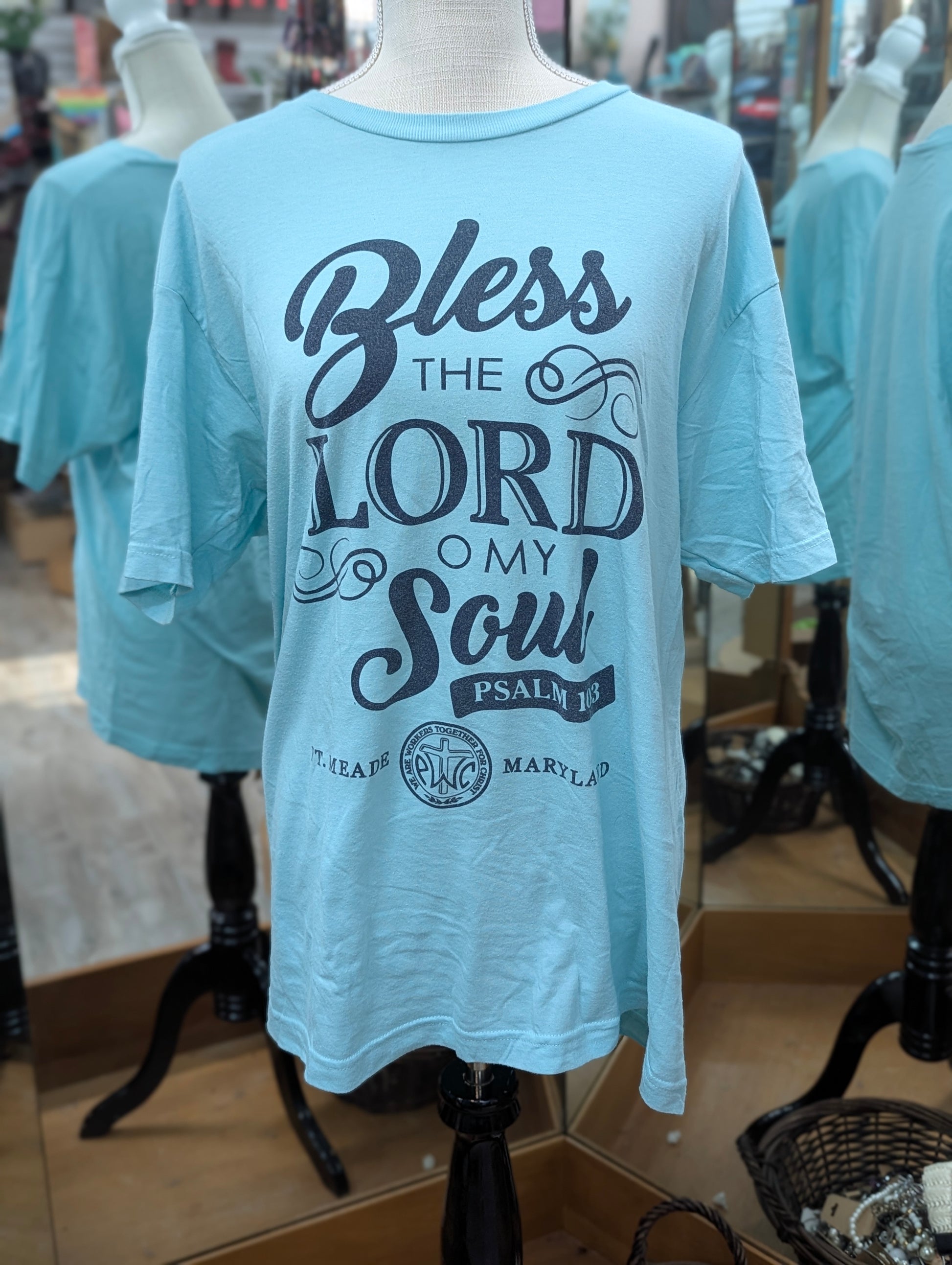 Light Blue Graphic Tee Short Sleeve With Scripture Quote.