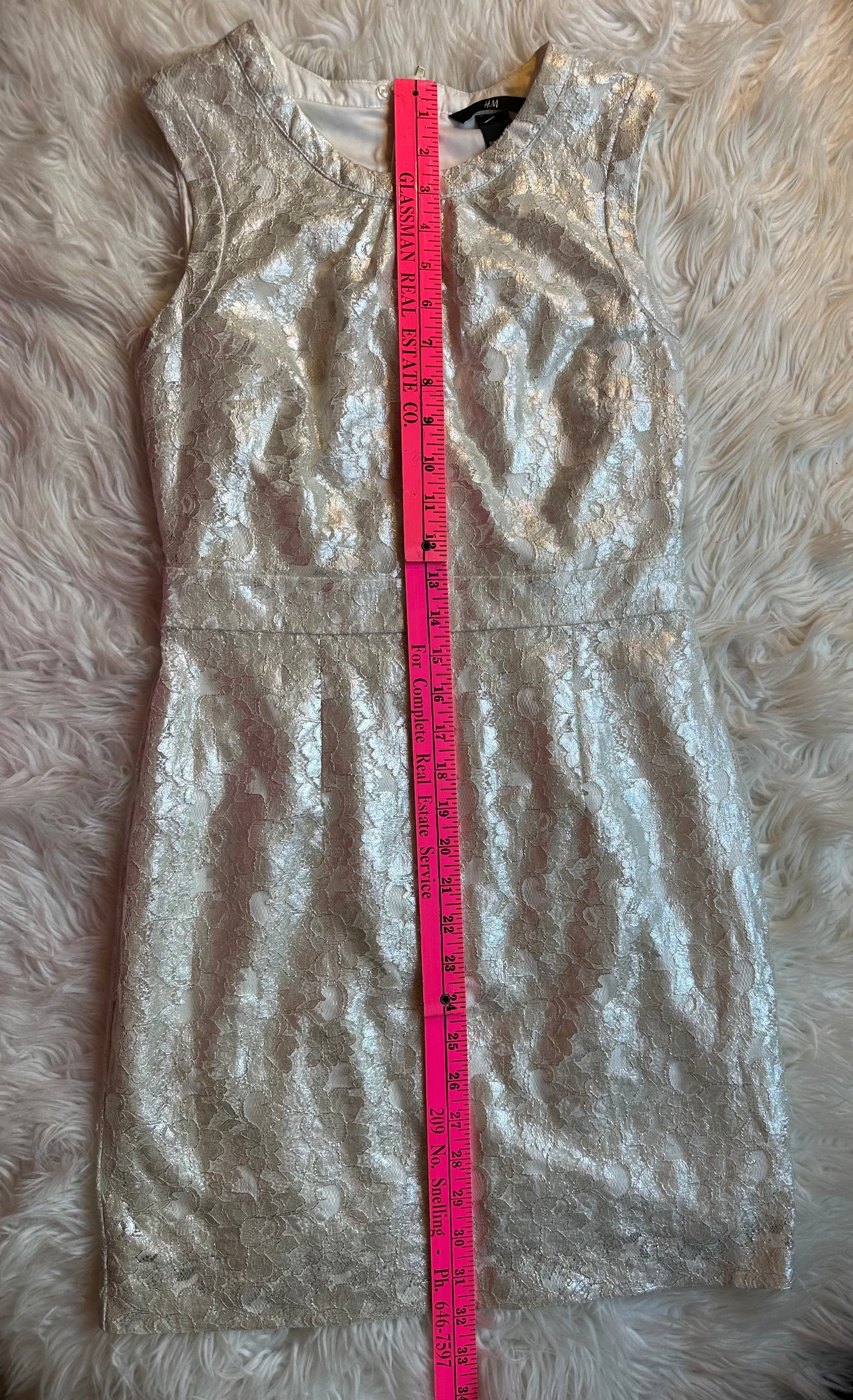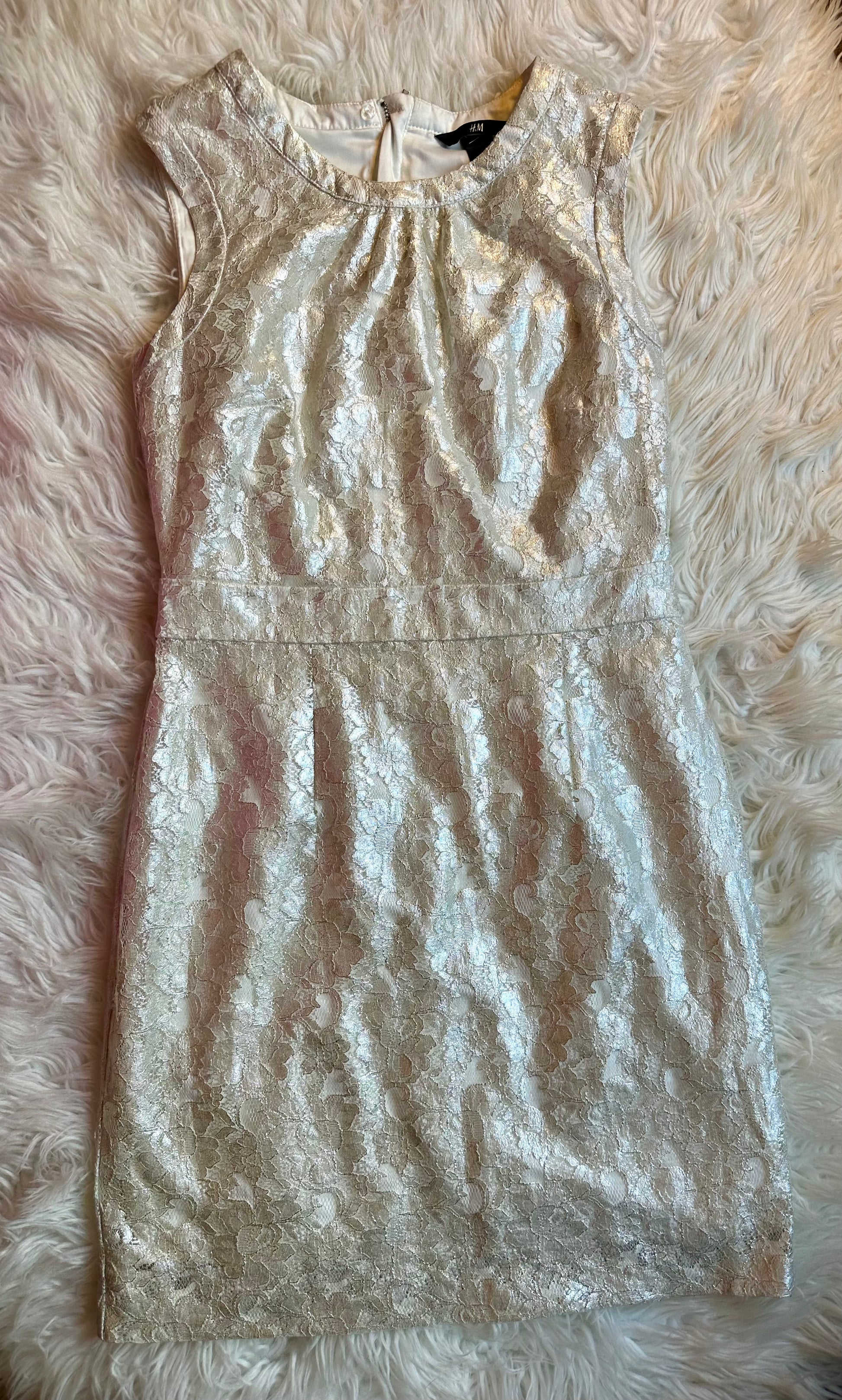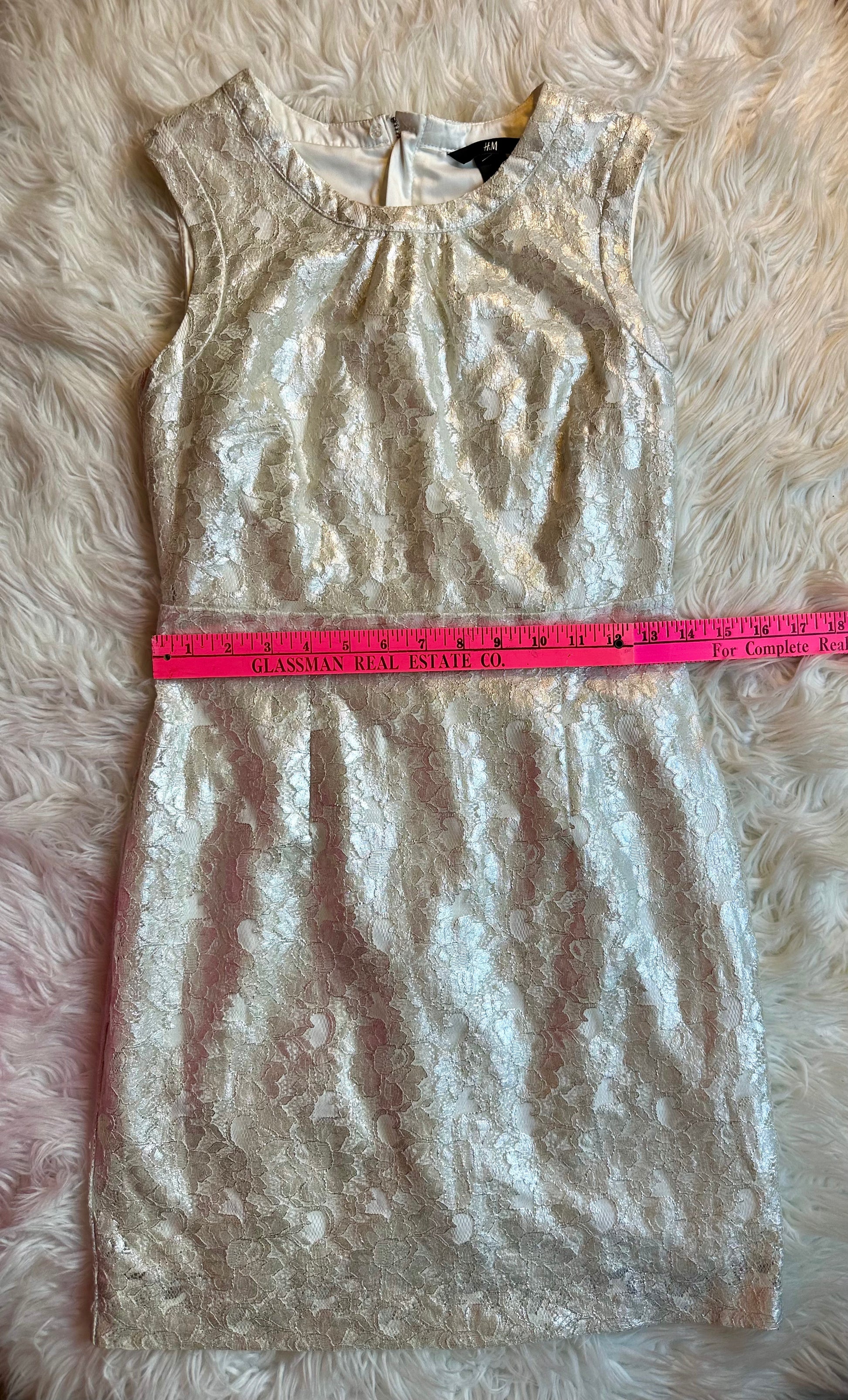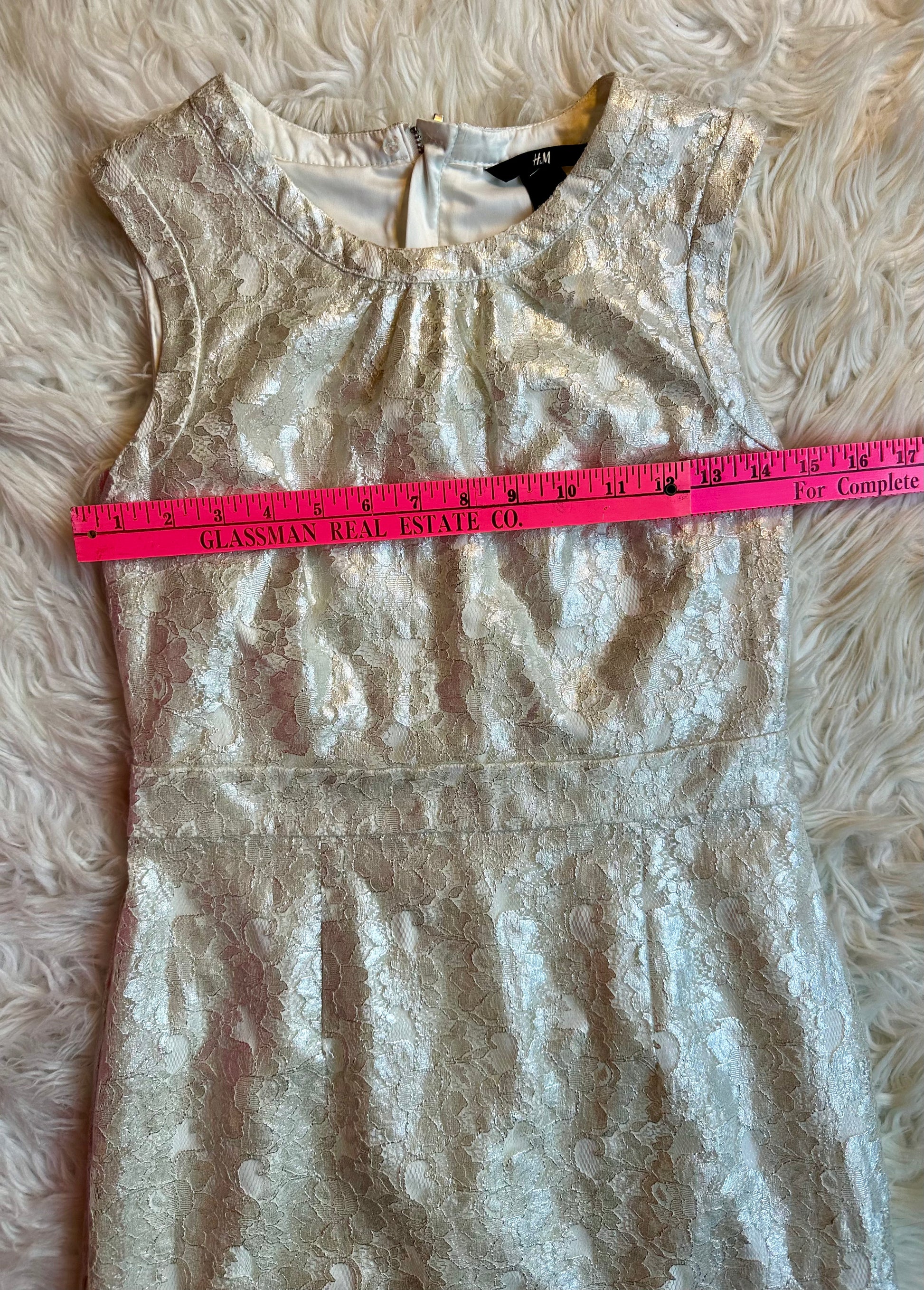 H&M Ivory Metallic Lace Sleeveless Sheath Special Occasion Dress Women’s Size 6