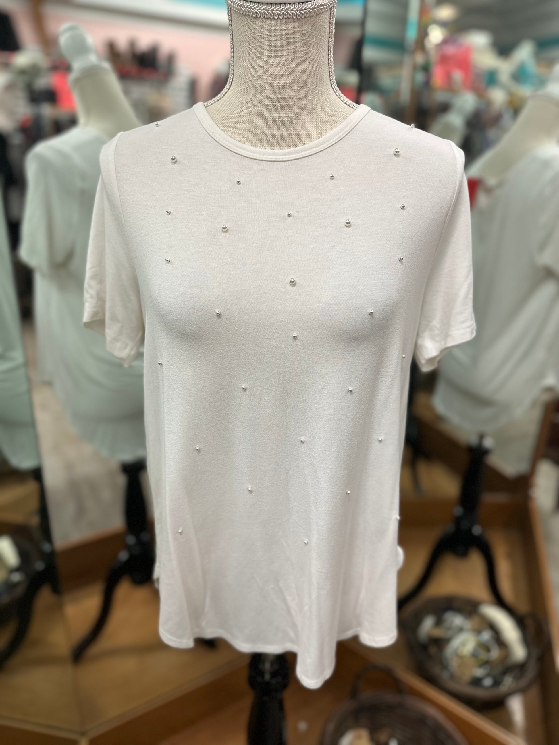 Karen Kane Pearl Embellishment White Short Sleeve in M