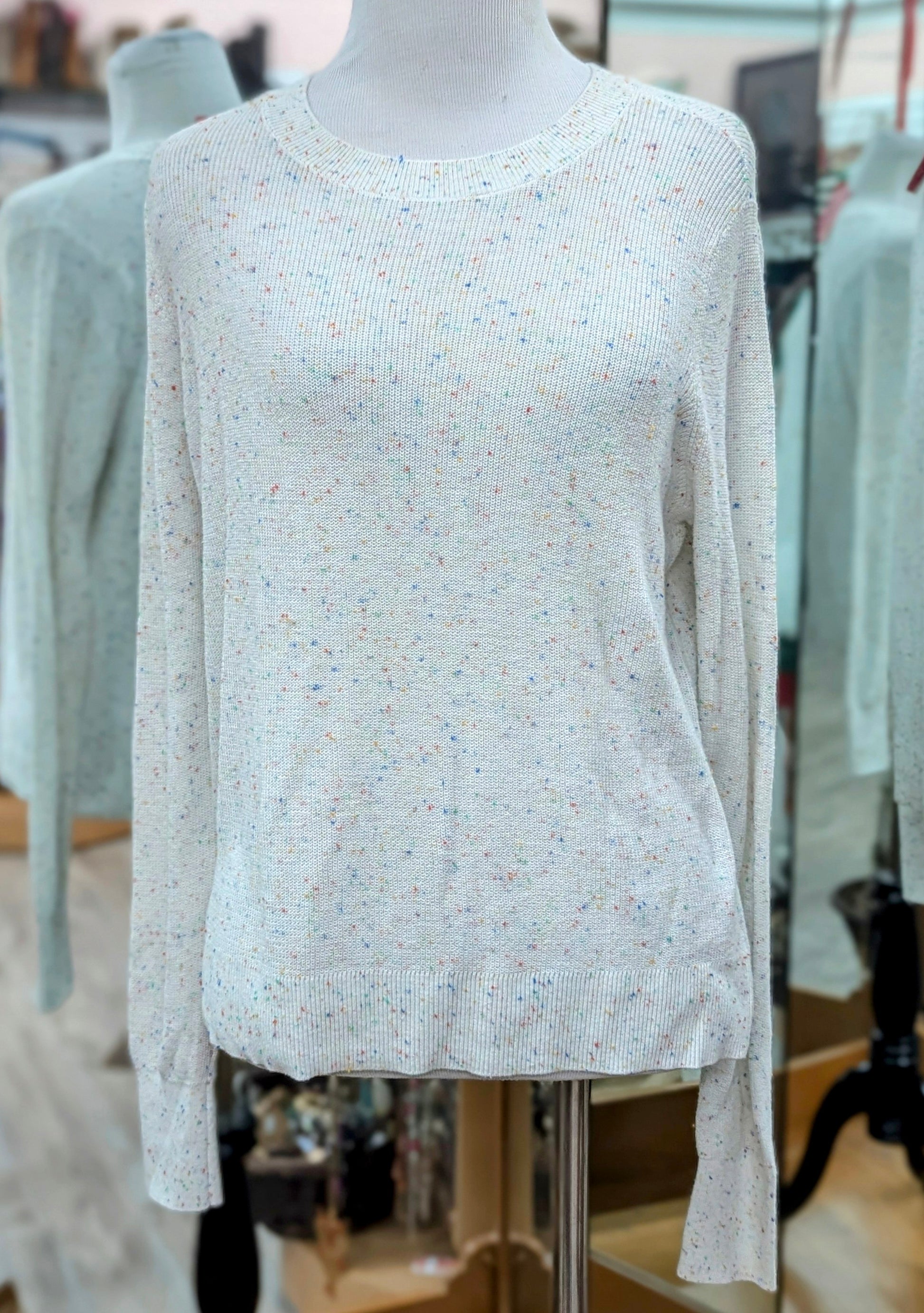 EUC Women's Size Medium Sweater Long Sleeve White With Multi Color Spackles and Flakes