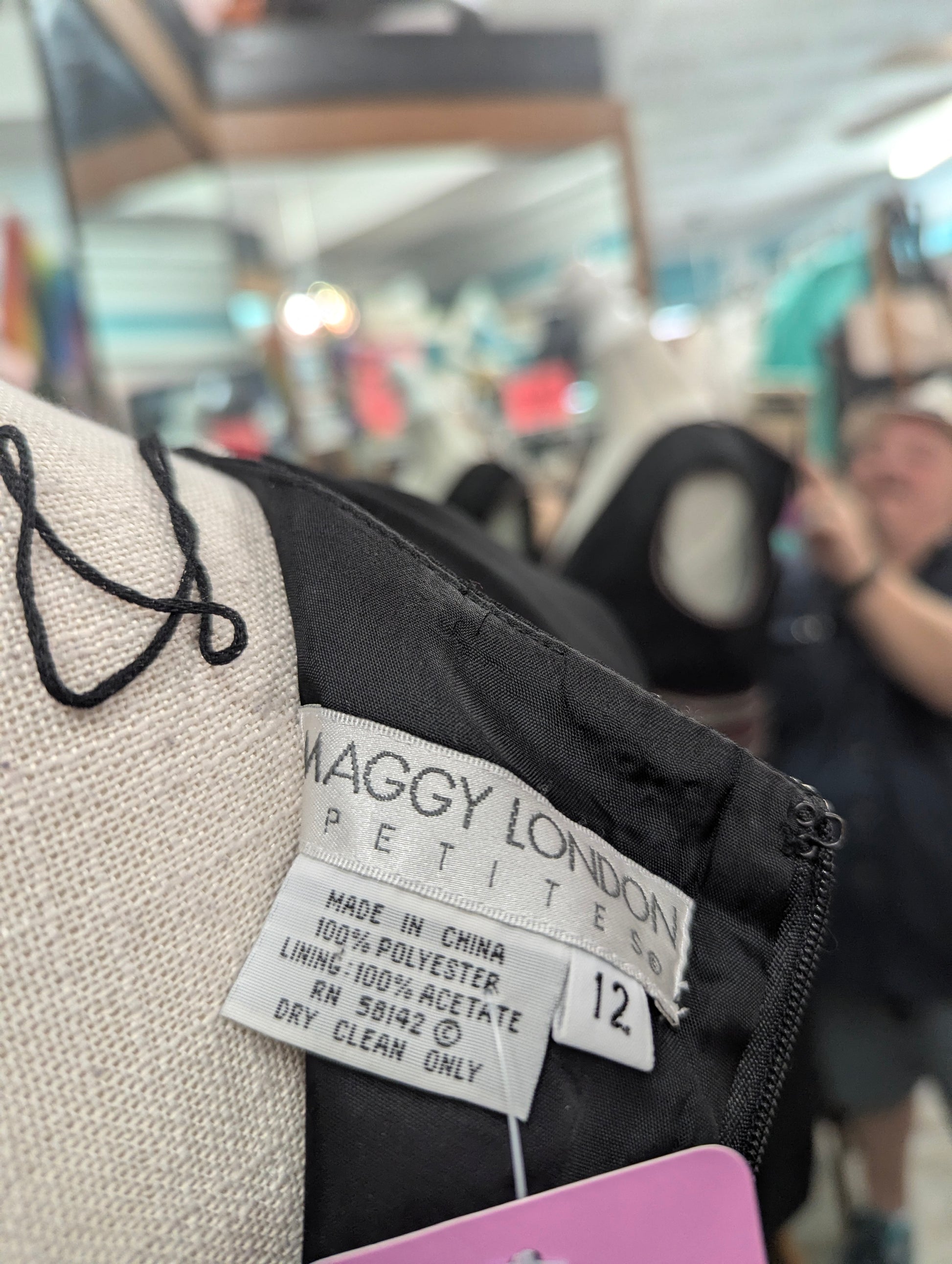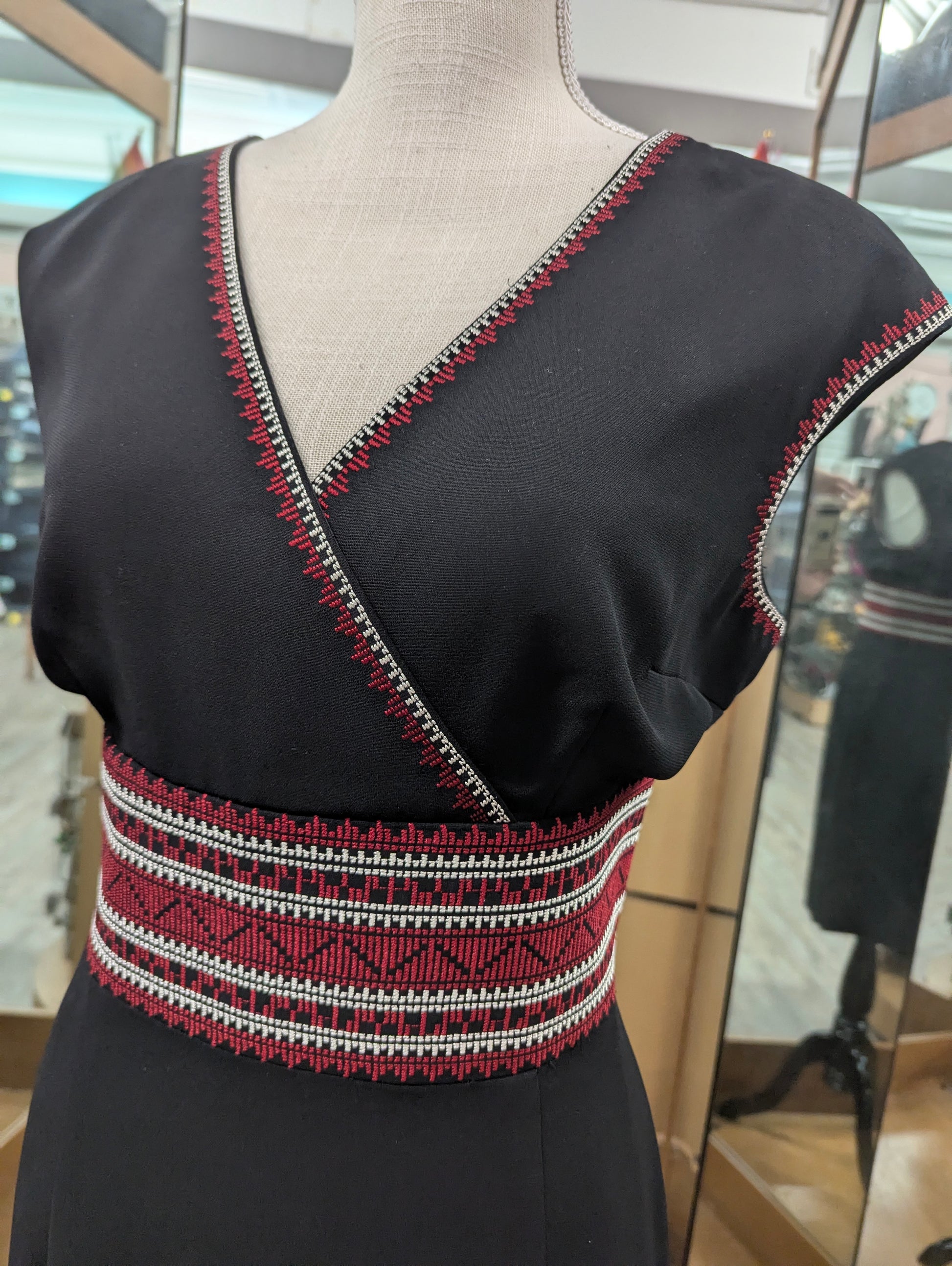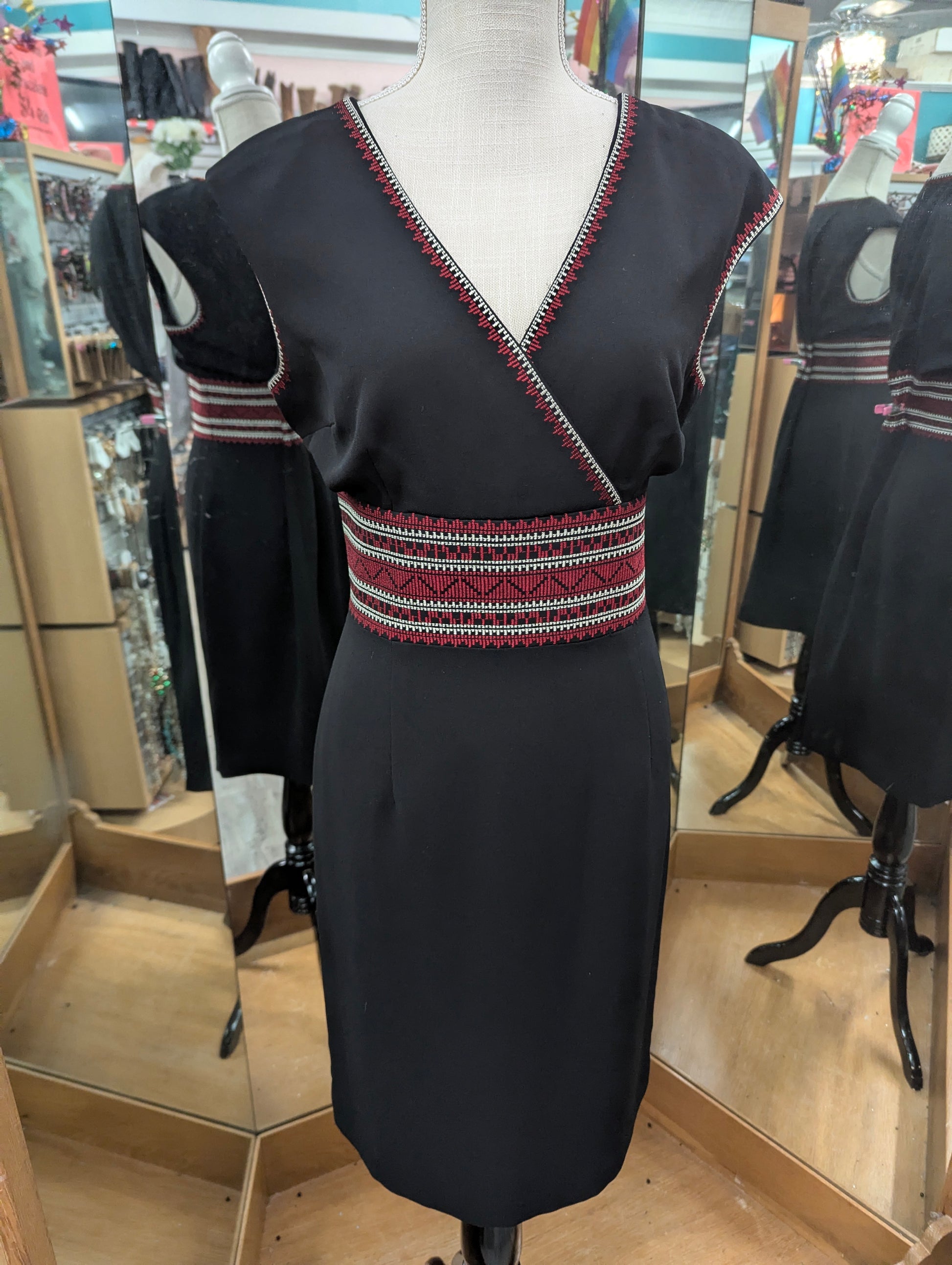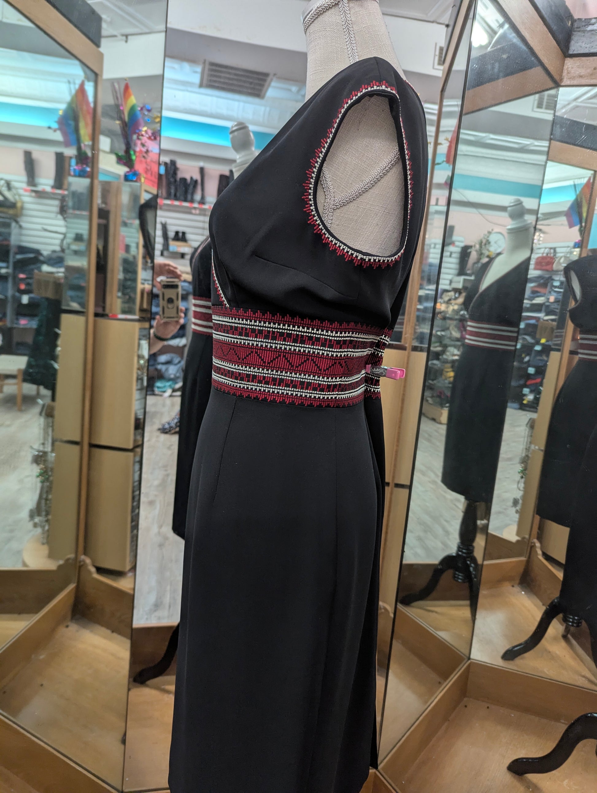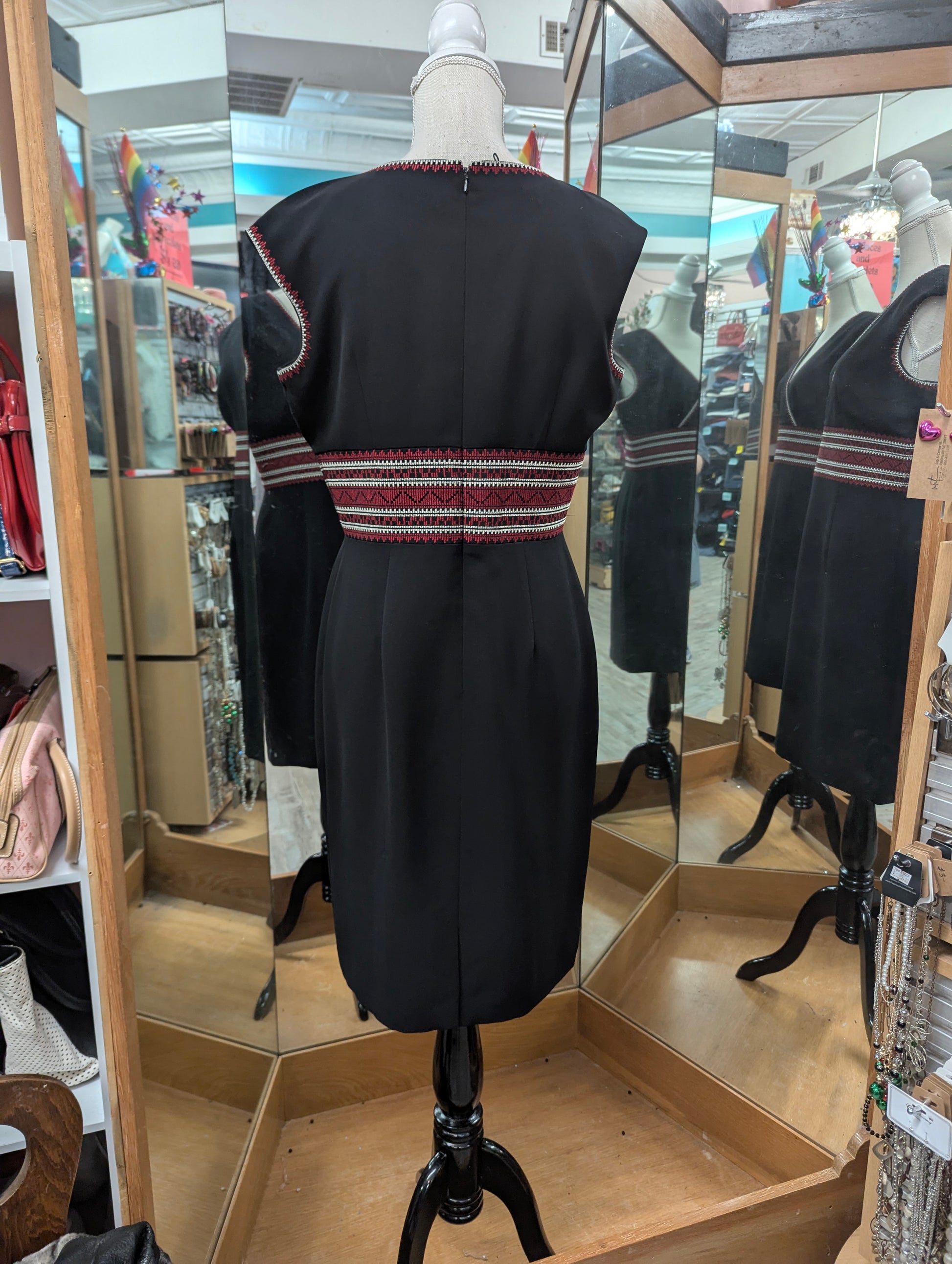 Maggy London Petites Black Sheath Dress with Red and White Embroidery in 12