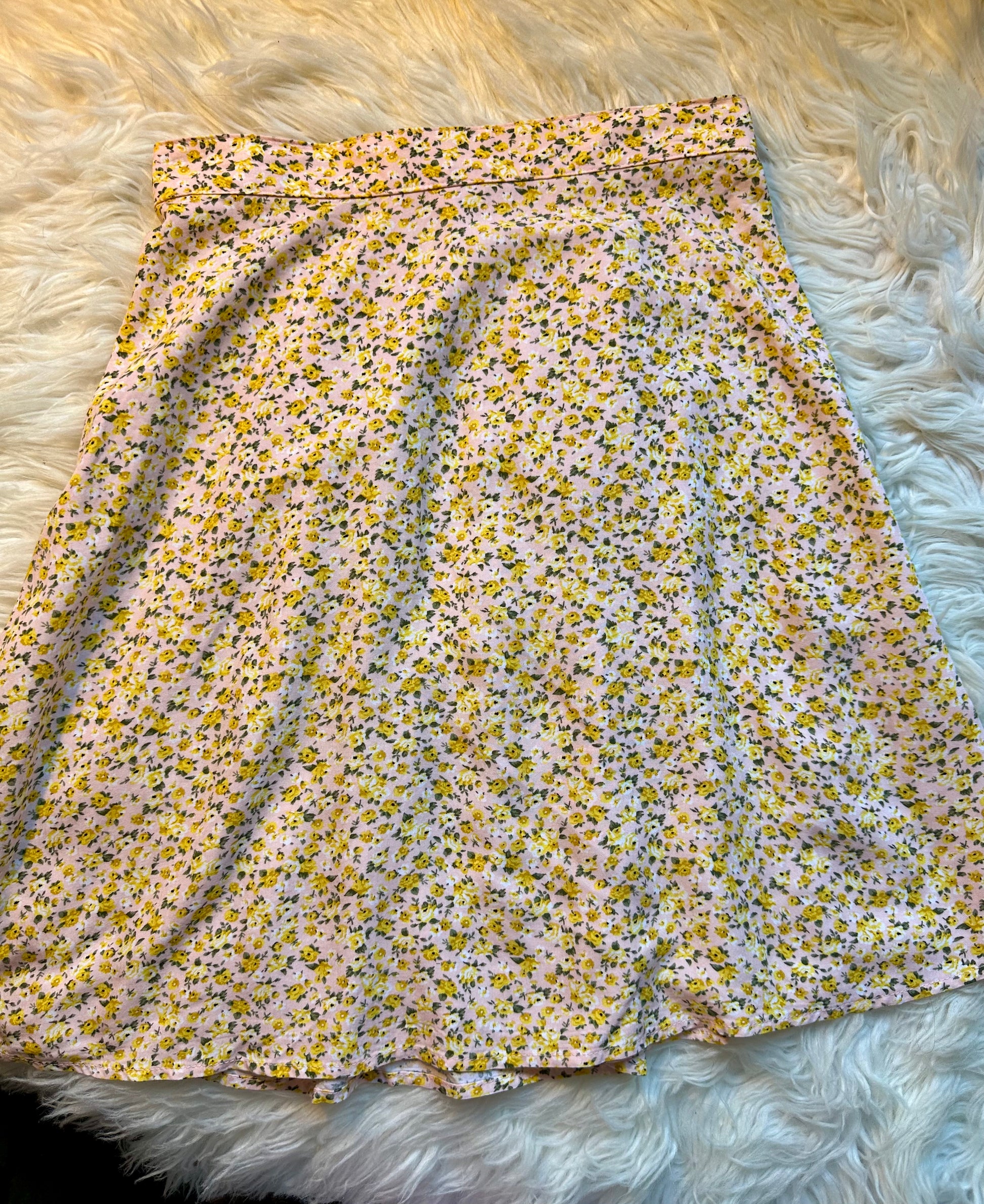 Old Navy Floral A-Line Skirt XS – Pink Yellow Rayon Viscose Pull-On Waist