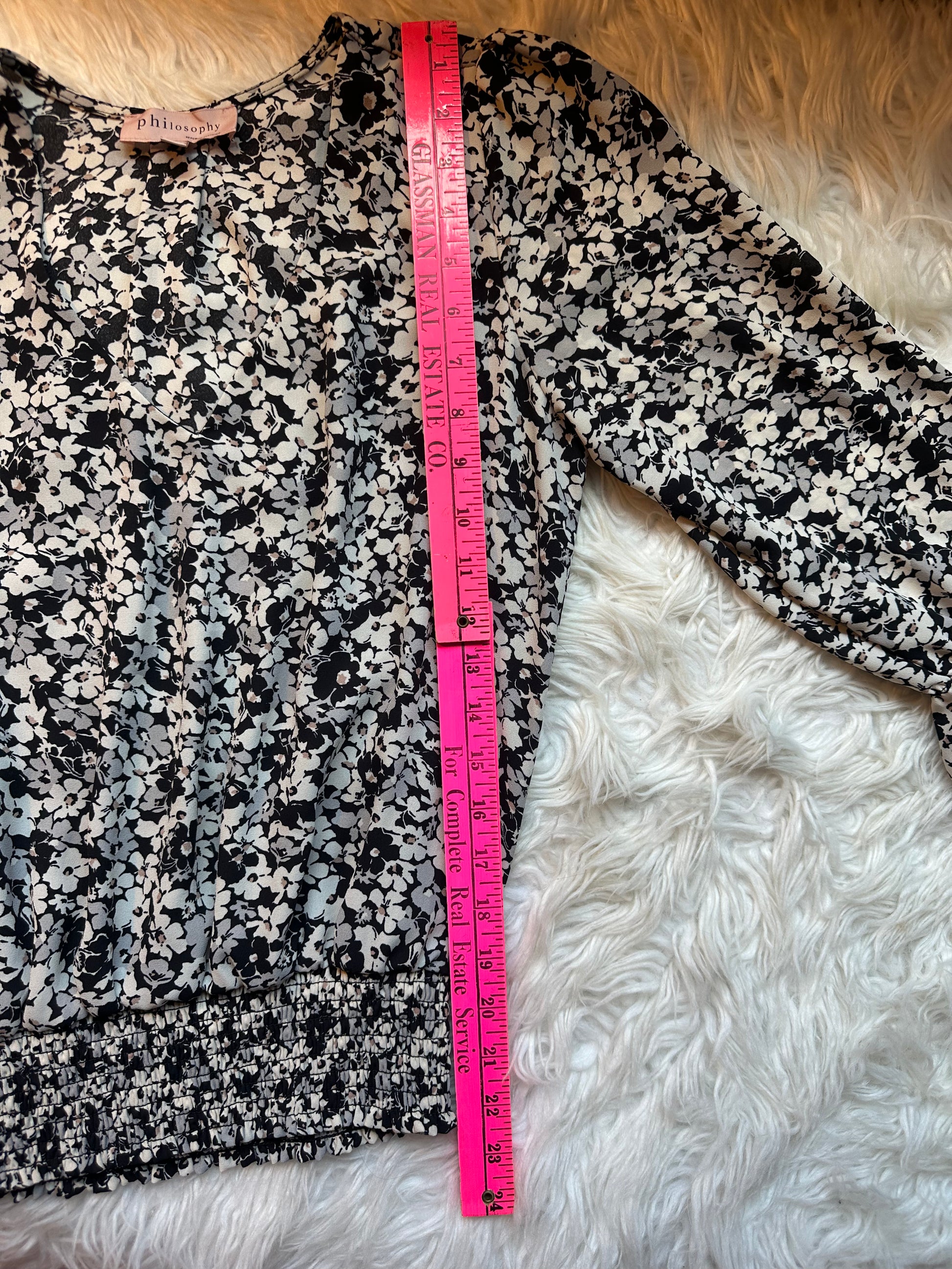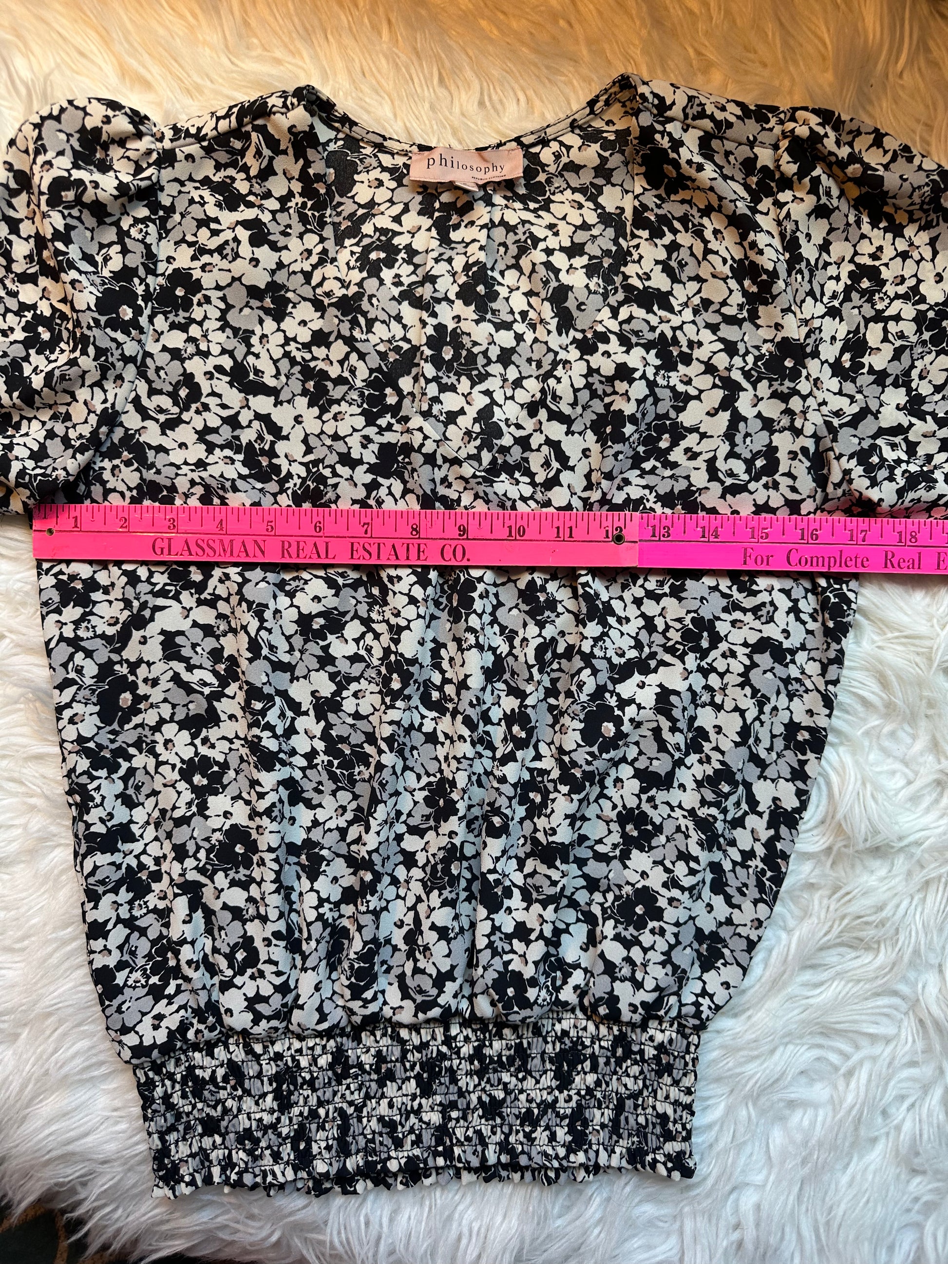 Philosophy Black White Floral V-Neck Blouson Sleeve Smocked Waist Women’s Small