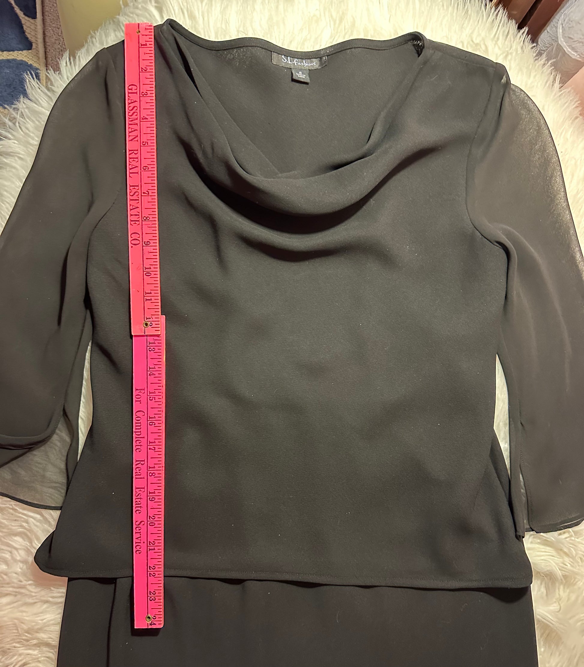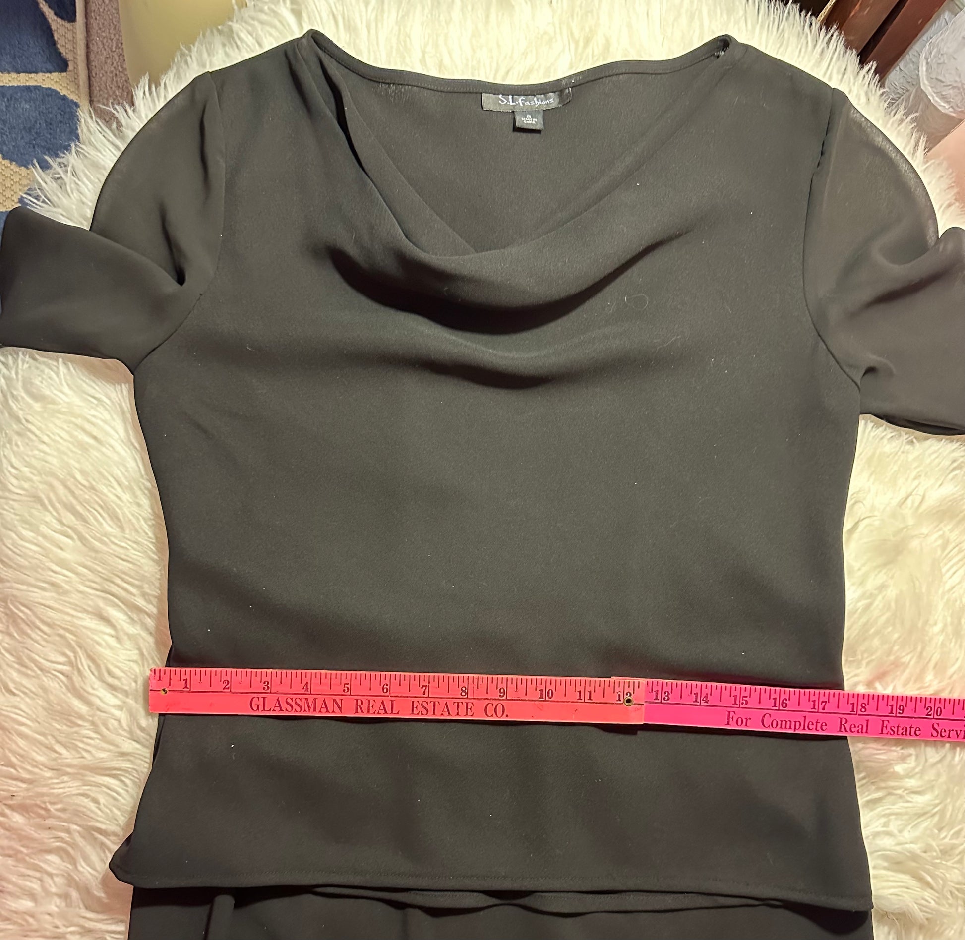 S.L. Fashions Black Chiffon Two-Piece Set Sz 8 Elegant Trumpet Midi Skirt & Top