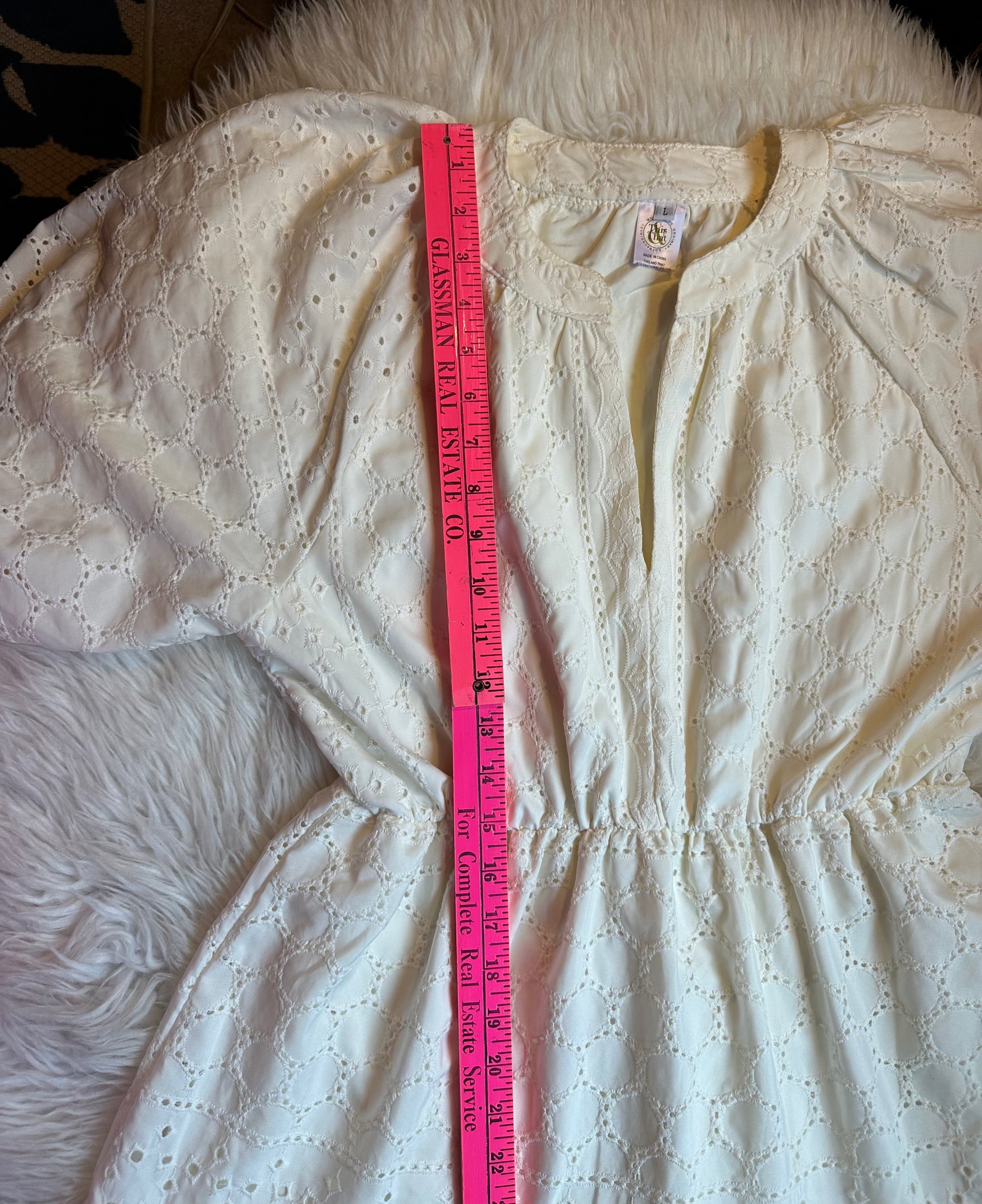 This & That White Eyelet Midi Dress Women’s Large V-Neck ½ Sleeve Tiered Boho
