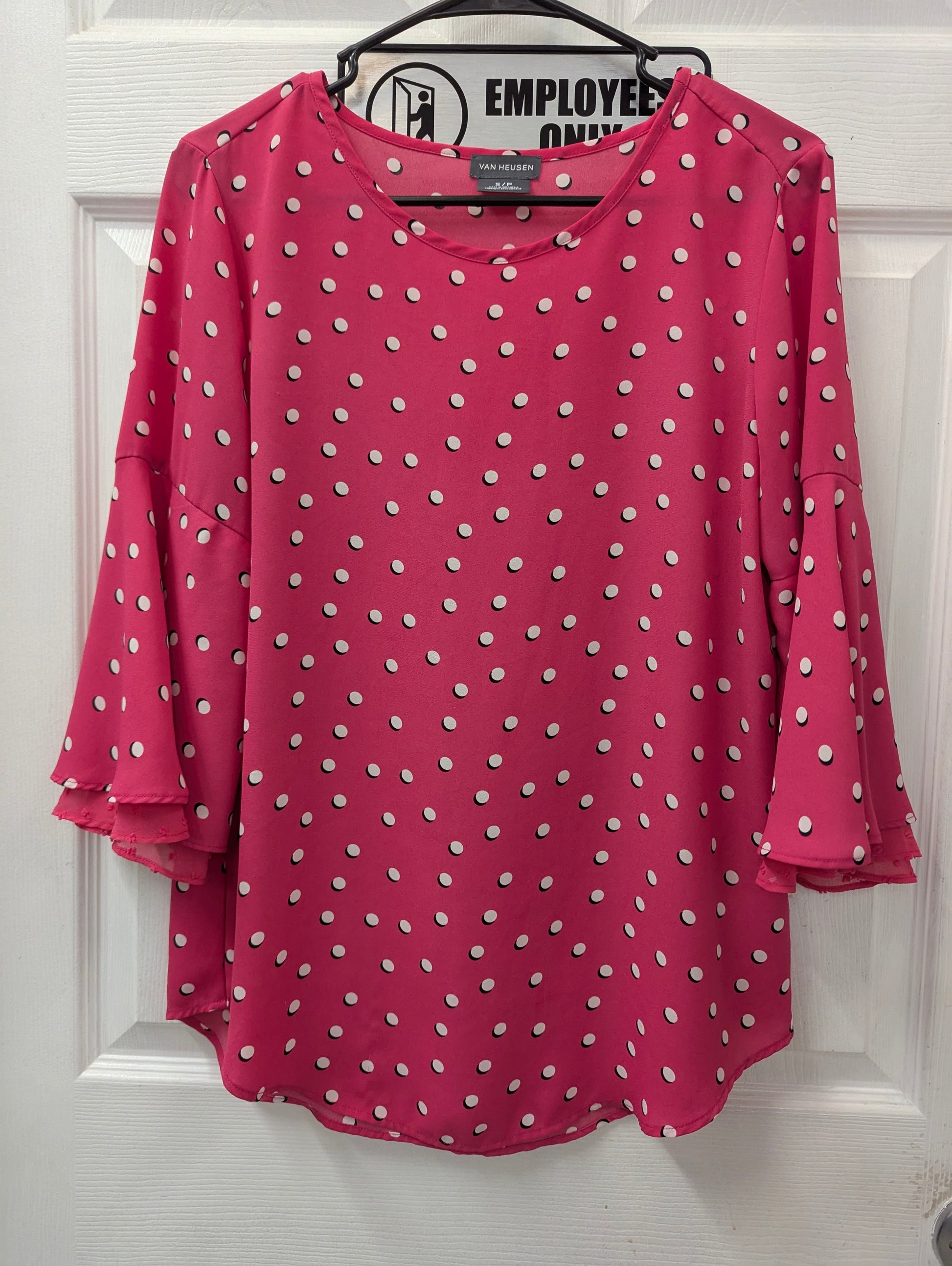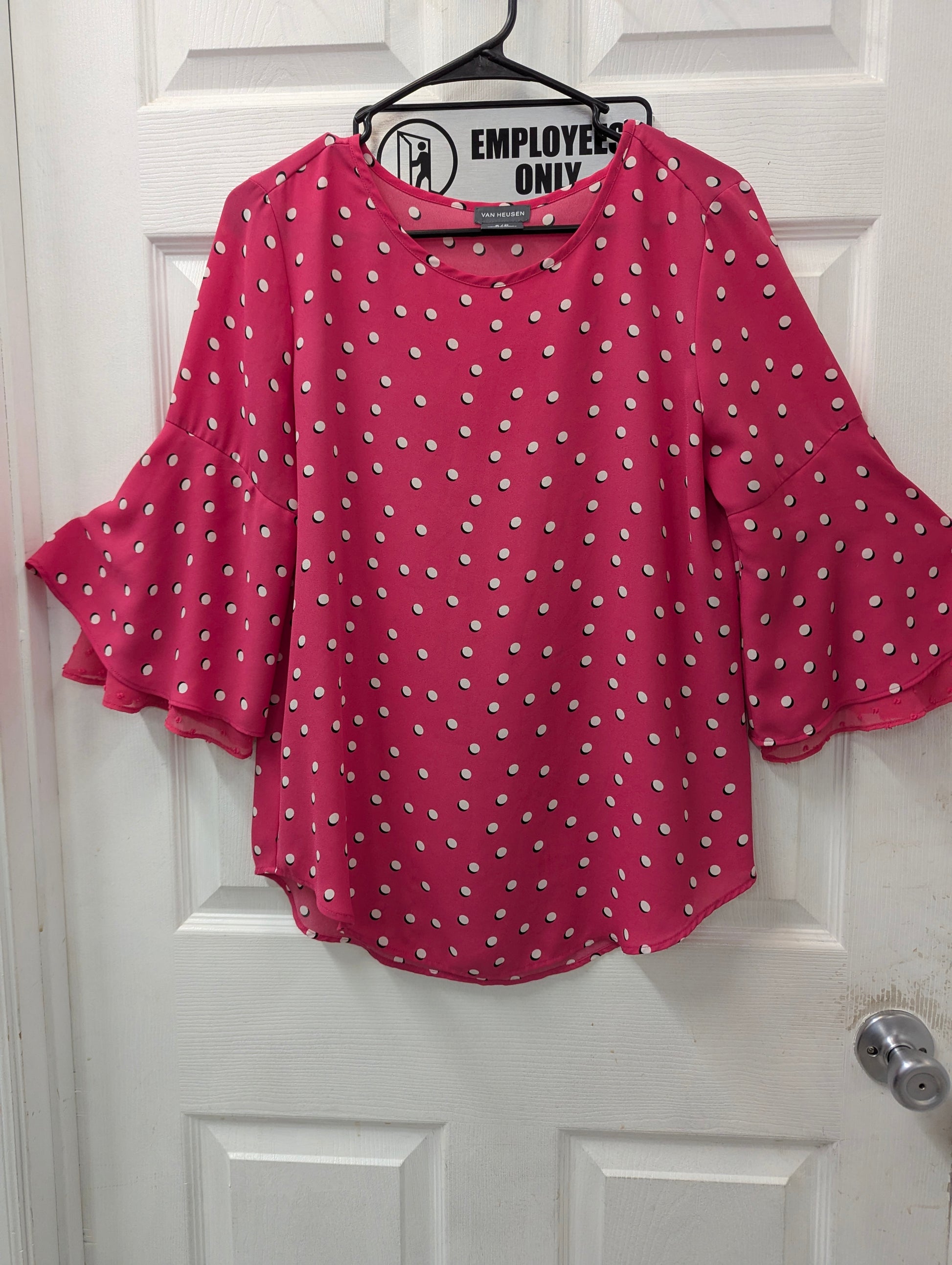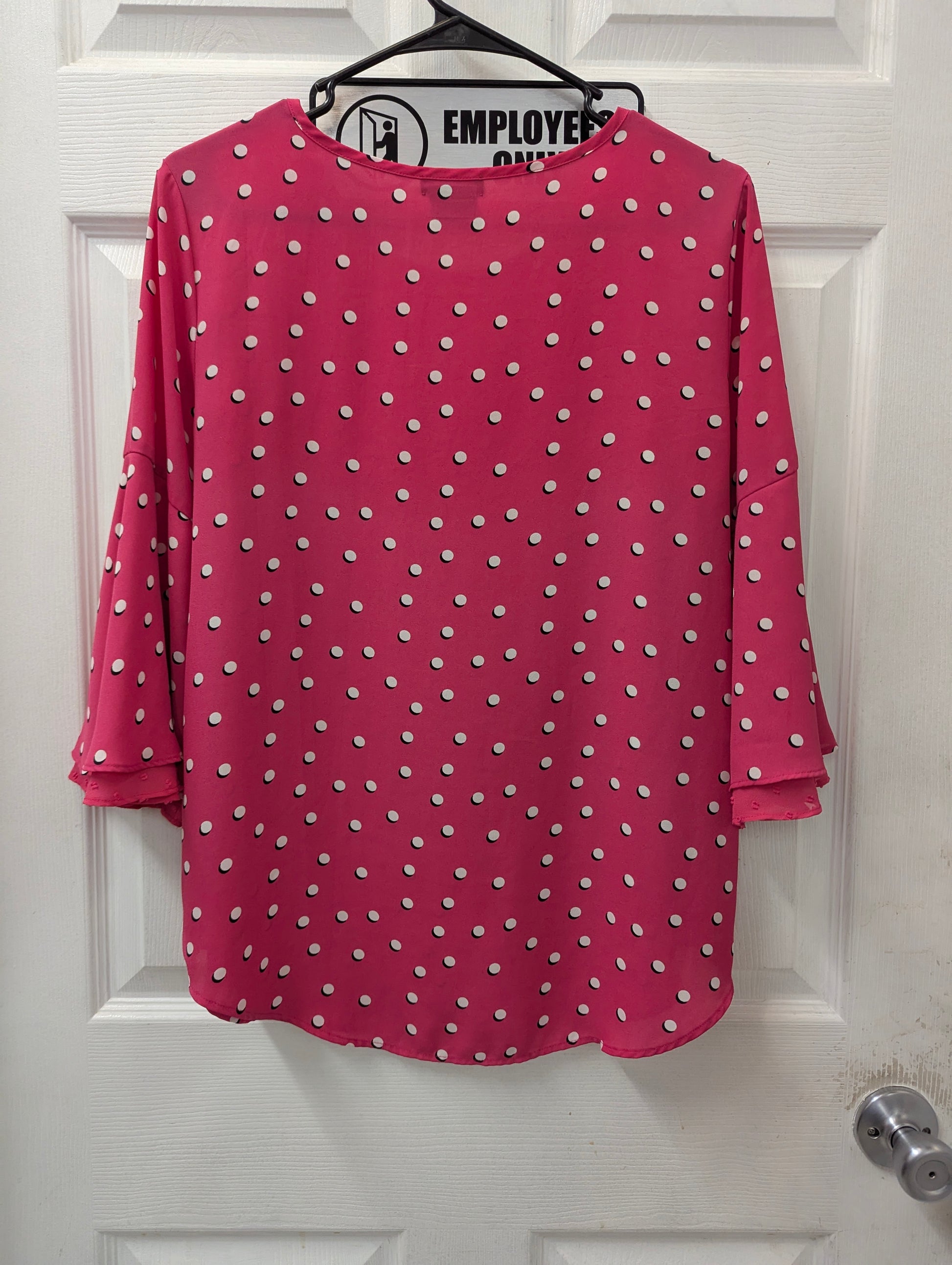 Women's Size Small P Top, Pink with White polkadots Flared Long Sleeves