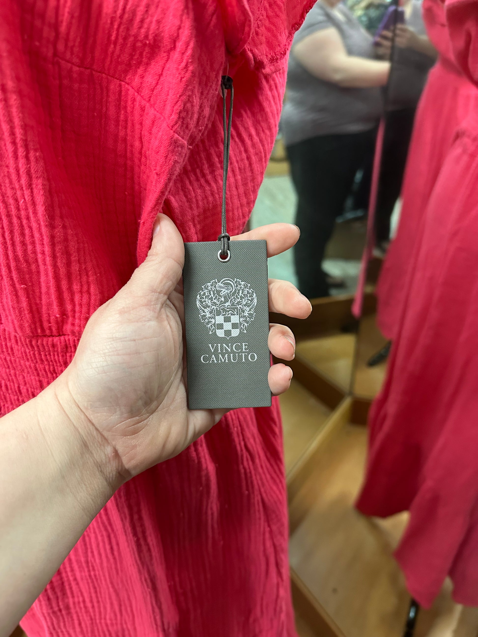Introducing the Vince Camuto Pink Gauze Maxi Dress in L! This stunning dress features the renowned Vince Camuto brand, ensuring top quality and style. The new with tags design is made from light and airy pink gauze material, perfect for any occasion. Elevate your wardrobe with this must-have dress!
