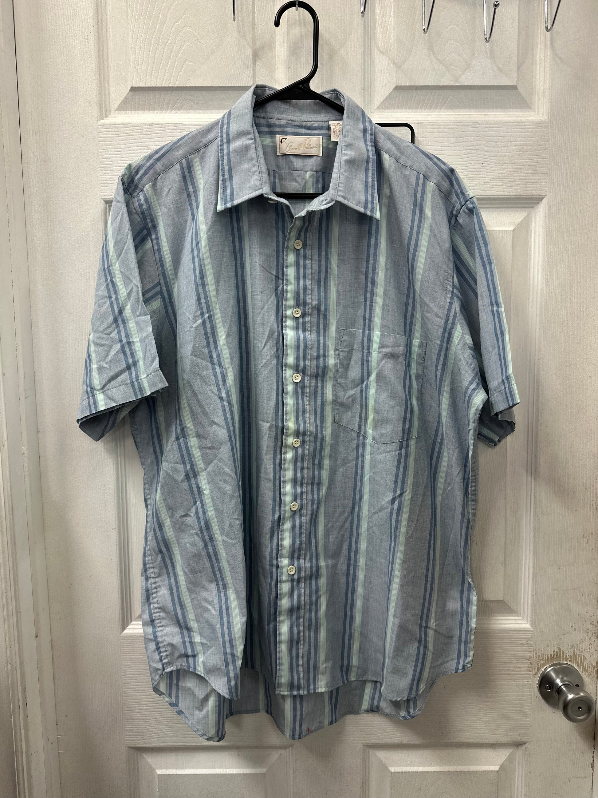 Vintage Arnold Palmer Blue and Green Striped Short Sleeve Button Down in XL